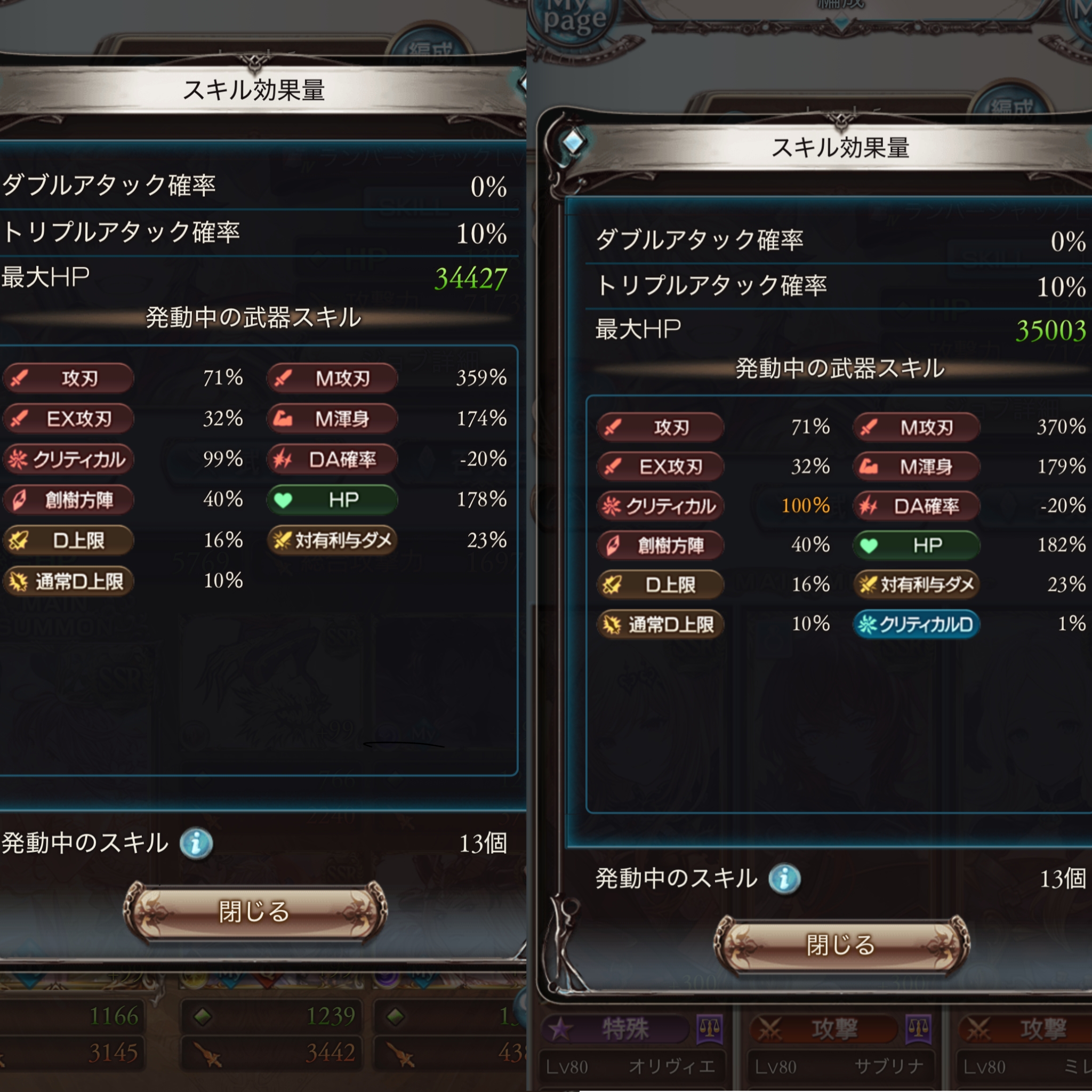 | … | 46126/01/19(月)16:04:20No.1393991426+>グラブル初心者なんですがクリティカルって通常攻撃のみにしか乗らないんです? アビや奥義にもクリ判定あるんだけど攻撃力に個別の倍率をかけるからクリしなくても上限まで届きやすい 逆に通常攻撃はバフデバフくらいしか倍率がないからクリティカルしないと上限いかないとかがある 通常攻撃のほうがクリティカルの恩恵を受けやすいみたいなイメージ |