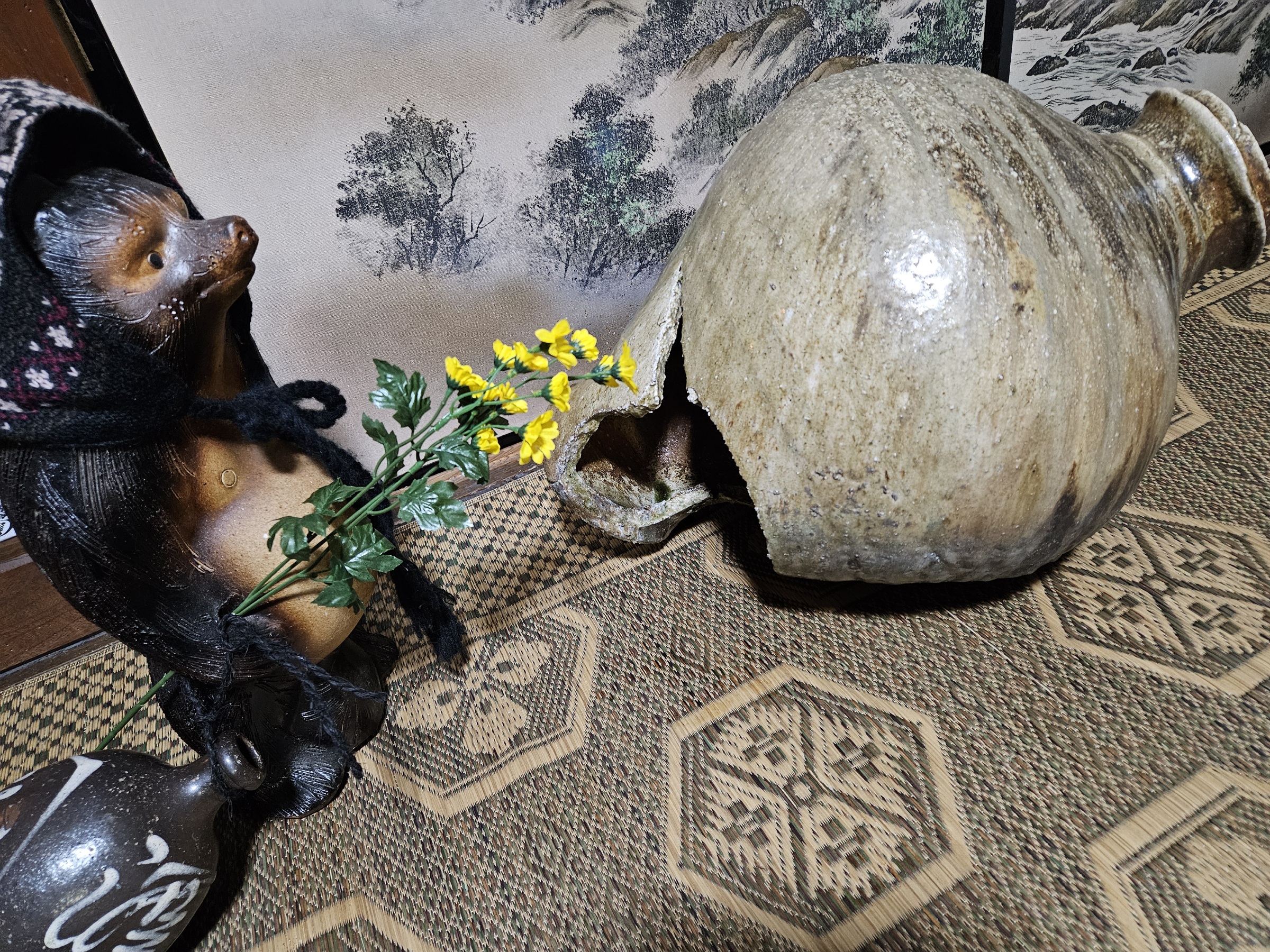 破裂してない完全体なら作家さんの一点ものでウン十万するであろうやつなのに怖い…