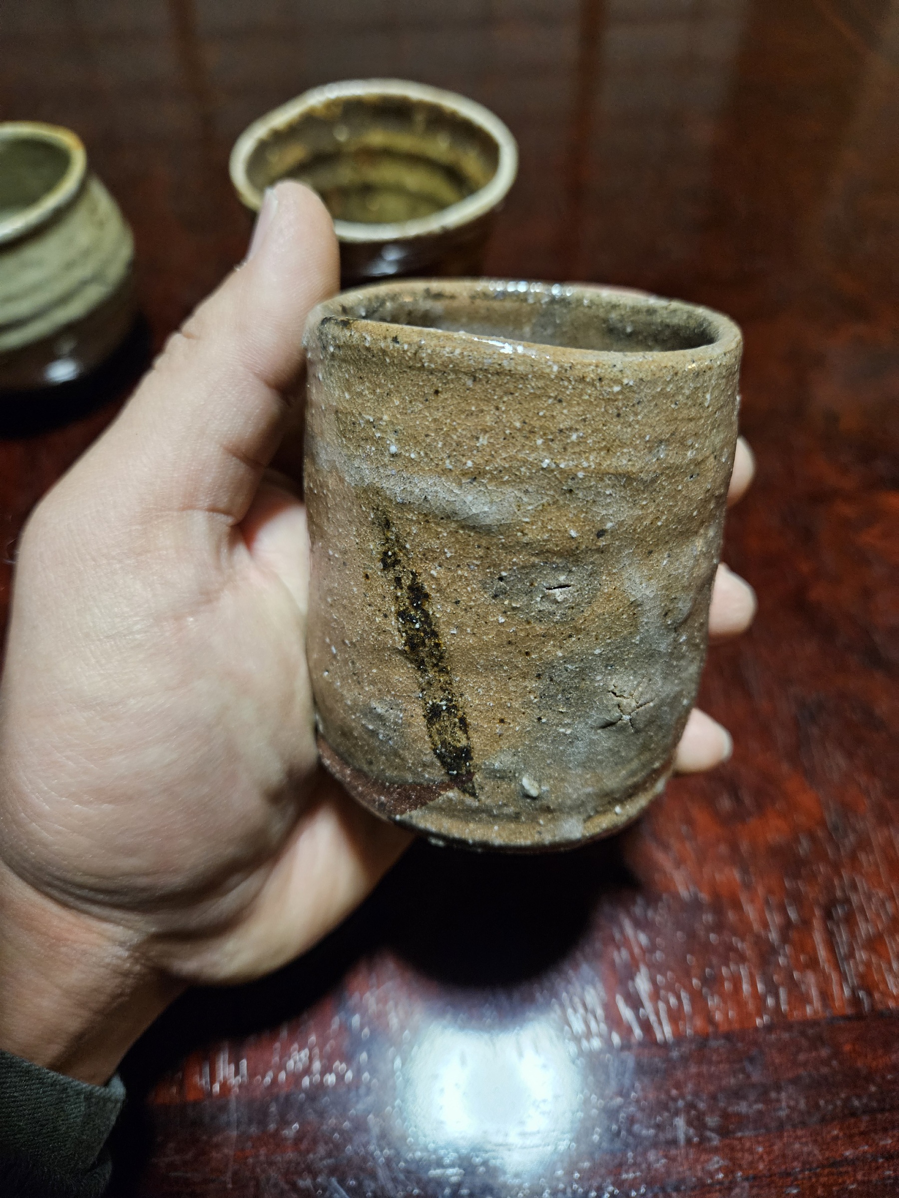 落ち着いた色調ながらダイナミックにたれた釉薬の模様があまりに美しくて家で眺めてたら涙が出てきた