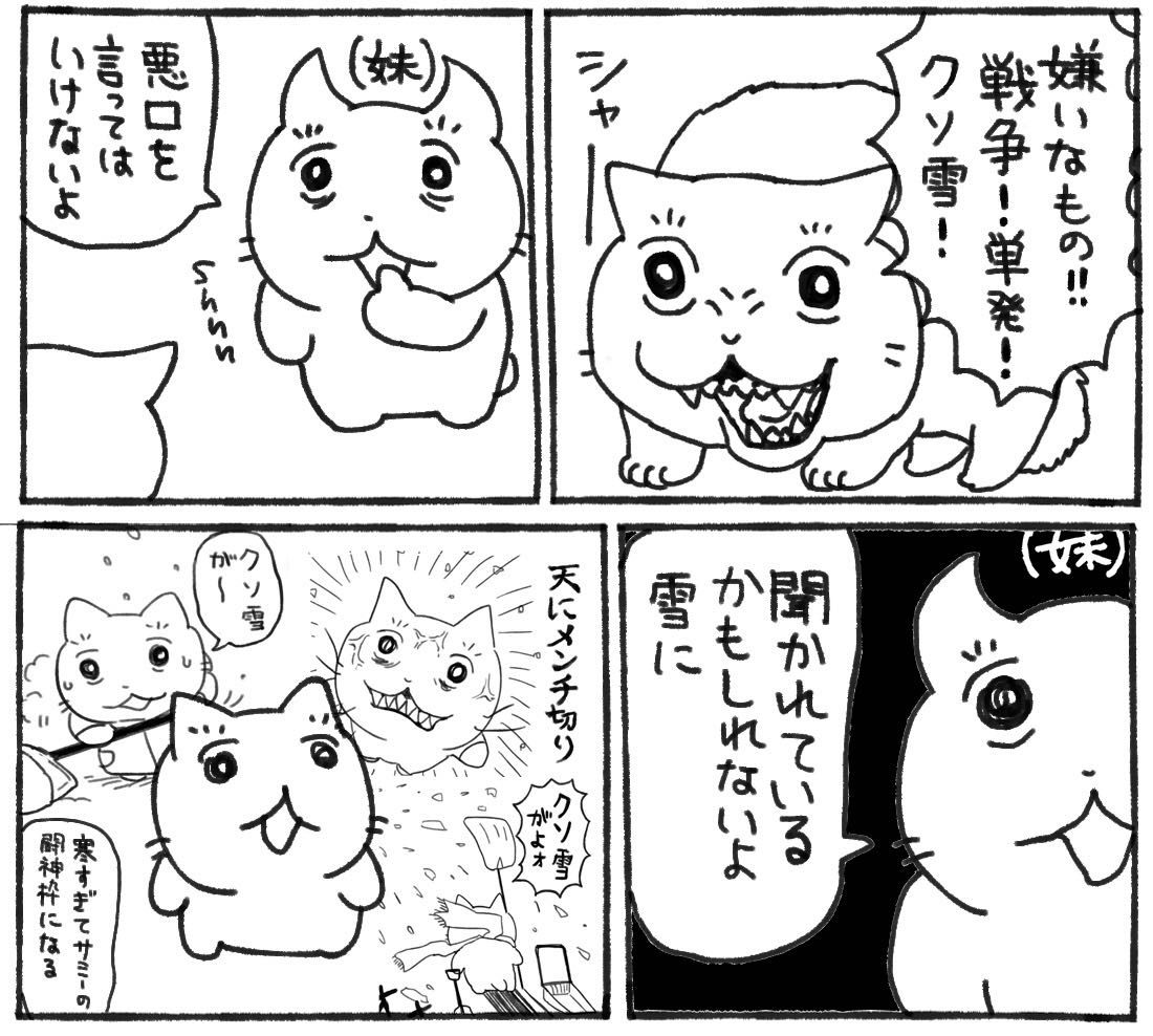 | … | 7726/01/24(土)13:23:11No.1395390910+まあ妹もクソ雪言うとったがな |