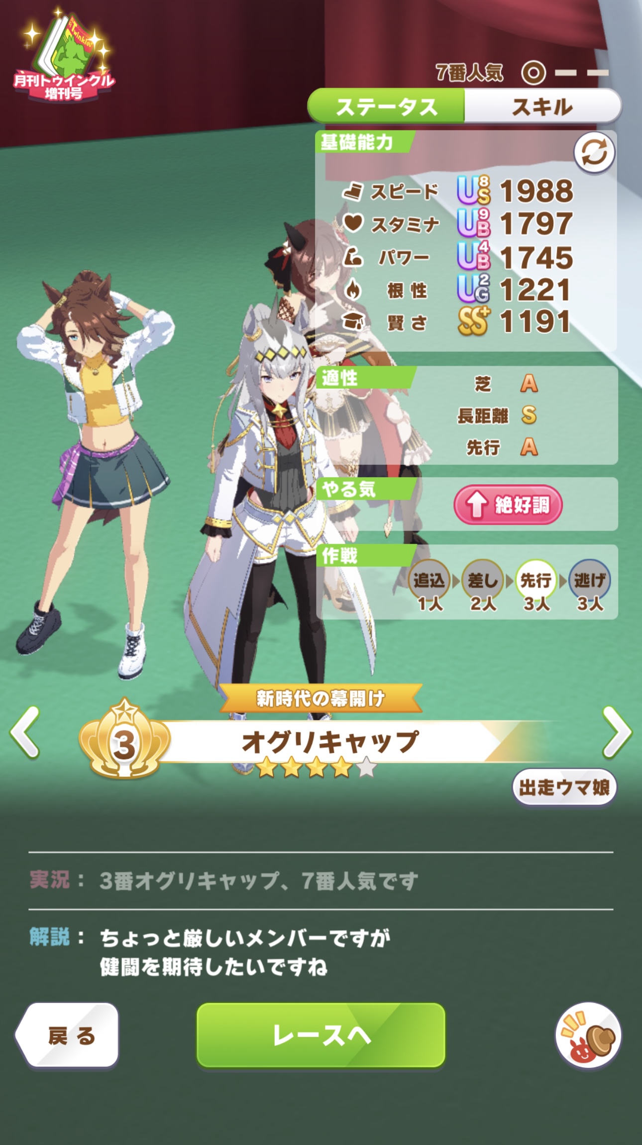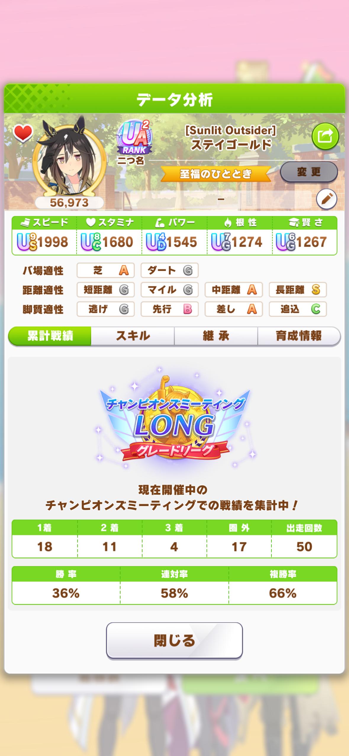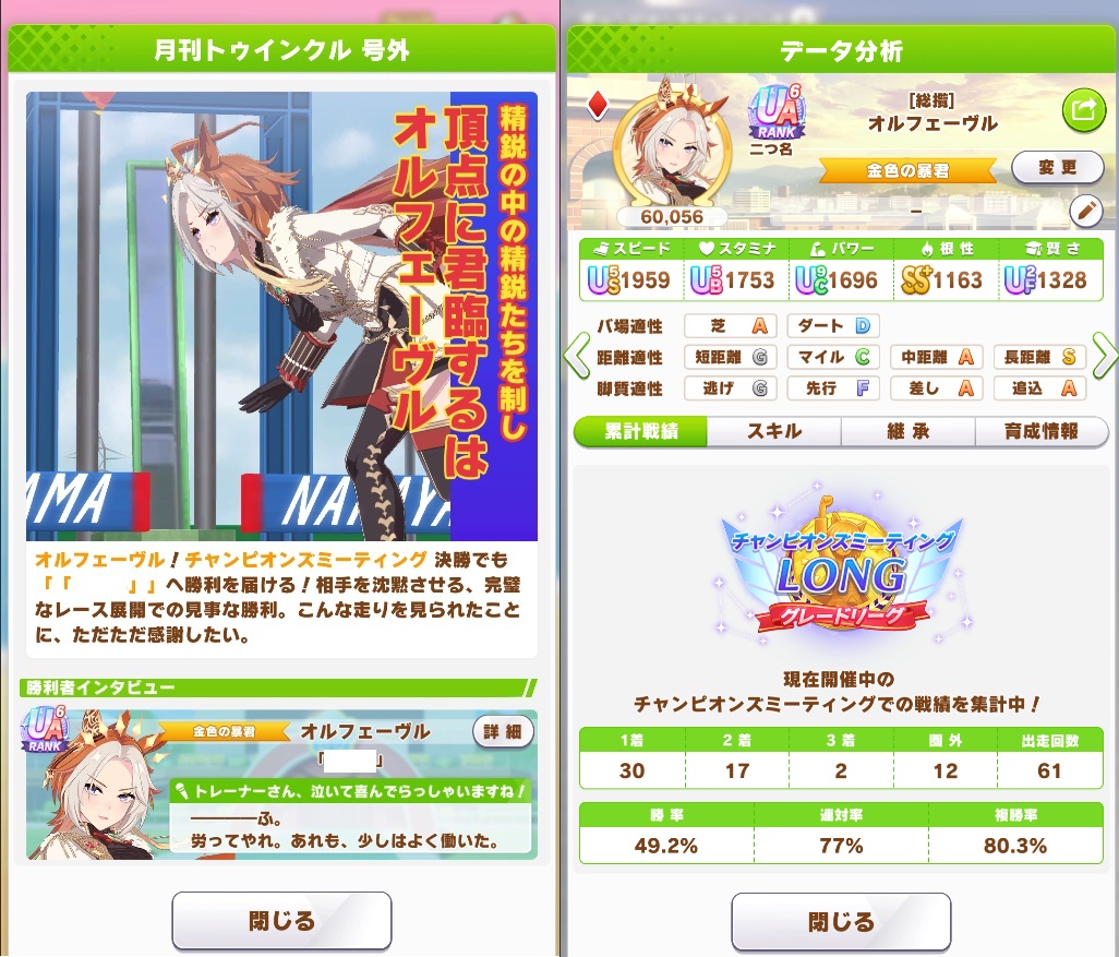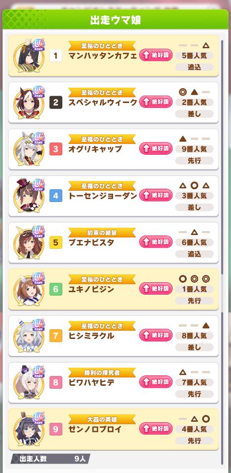 | … | 38326/01/27(火)12:50:22 ID:UuAhnop6No.1396322762+わーい勝てました でも相手が無人島育成の子だしてたりUSブライアンちゃんでも賢さ700台だったりで運だなと思いました |
