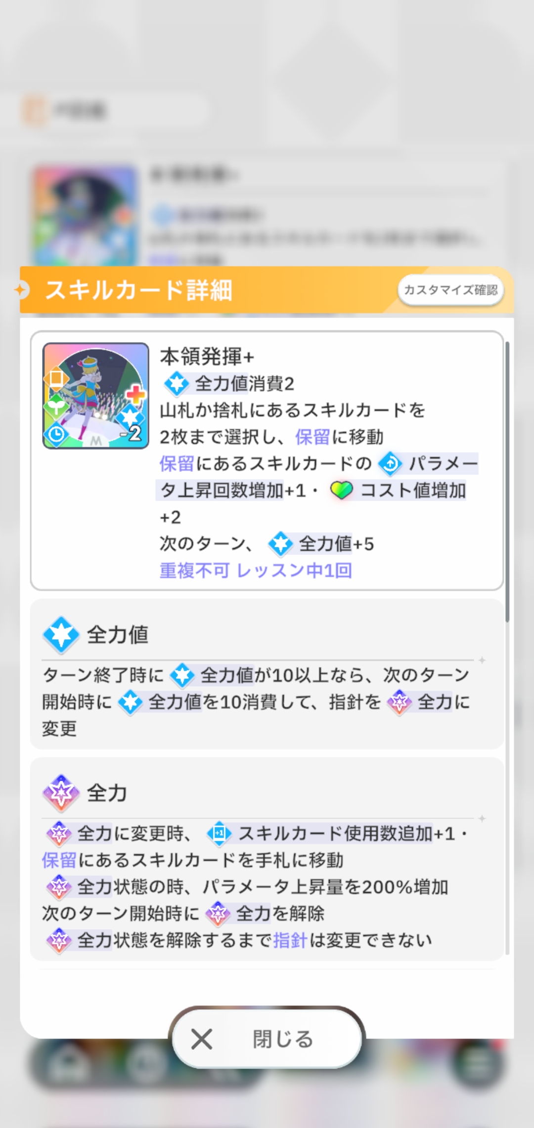| … | 40026/01/27(火)12:10:29No.1396310875+精神統一はカスタムで開始時手札やレッスン1回付与や条件を好調30以下に緩和とかあればまだ何とかなったかもしれませんわ なーんにもありませんわ! |