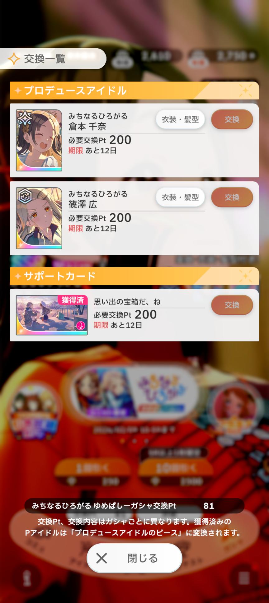 | … | 6526/01/27(火)10:54:33No.1396296462+篠澤さんは体力少ないのに体力消費前提のカードが多いですわ |