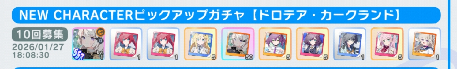 | … | 6626/01/27(火)19:00:25 ID:beMx2dBANo.1396404152+40連回してドロテア様しか来なかったぽよ |