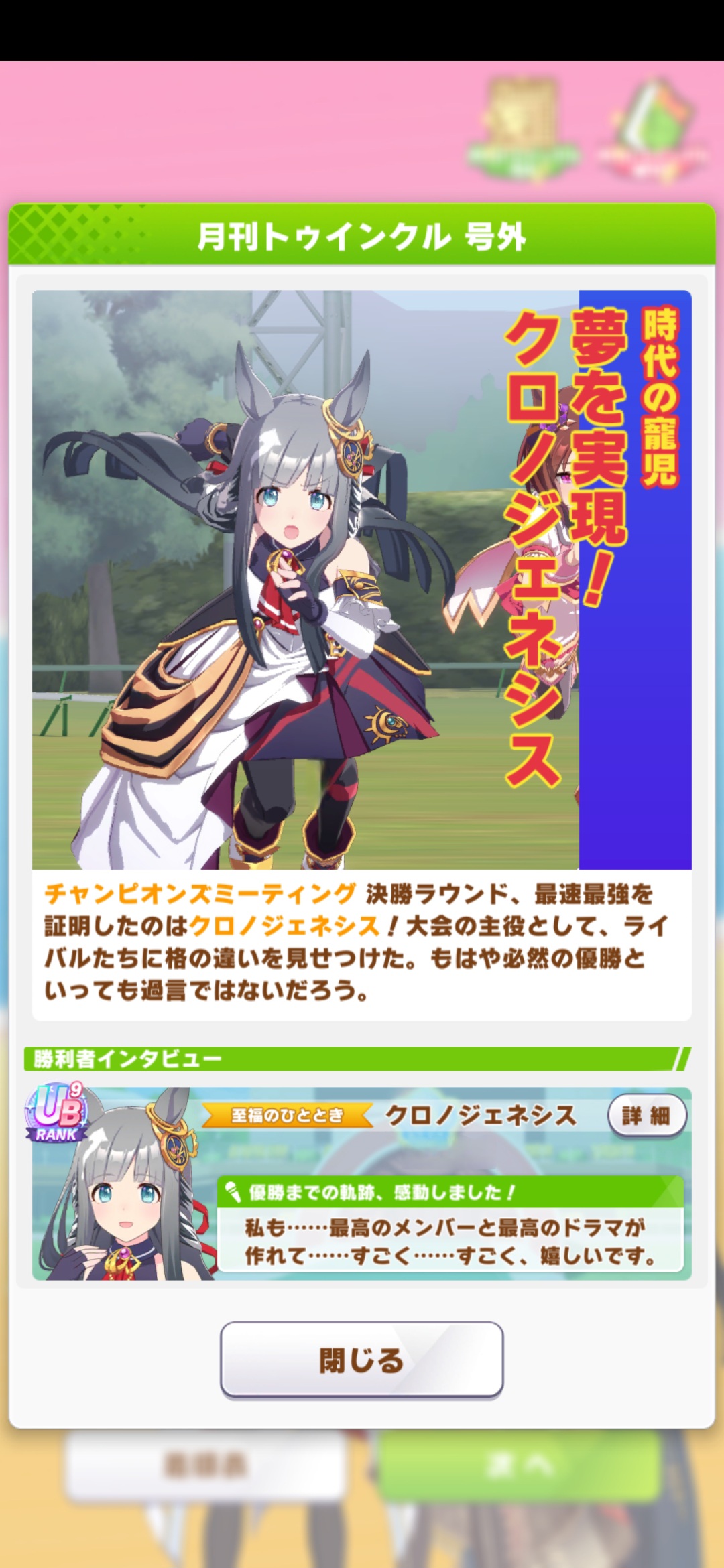 | … | 25026/01/27(火)21:54:04 ID:7MSj/OF6No.1396470264+サポカや新衣装やラークに対応してるイベントなんかで昔の育成シナリオで出た人達と再会するとちょっと嬉しいですね |