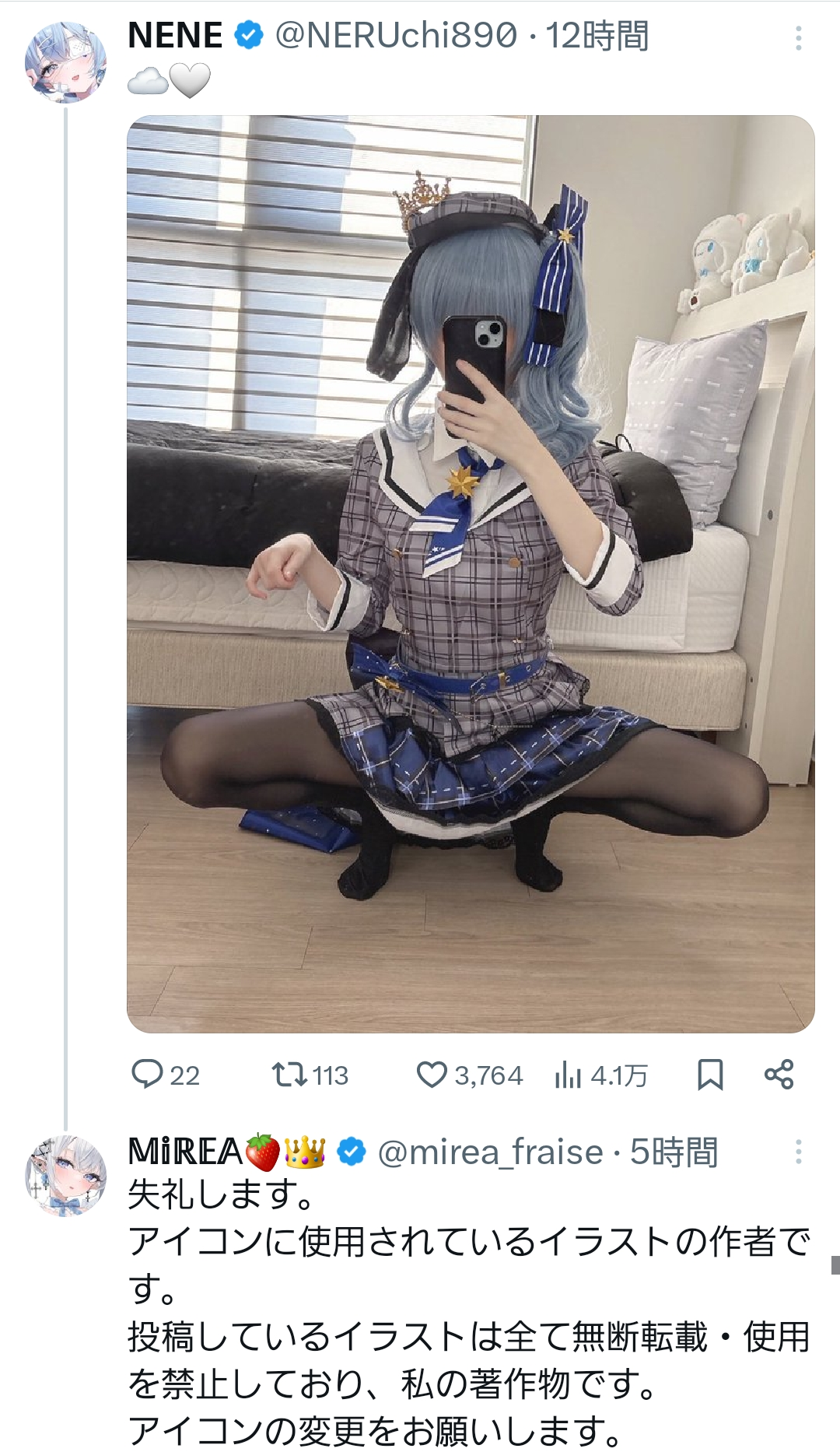 | … | 8826/01/28(水)03:45:23No.1396546440そうだねx6>変更をお願いしますじゃなくて無断使用です変更を命じますくらい言ってもいいんじゃいないか |