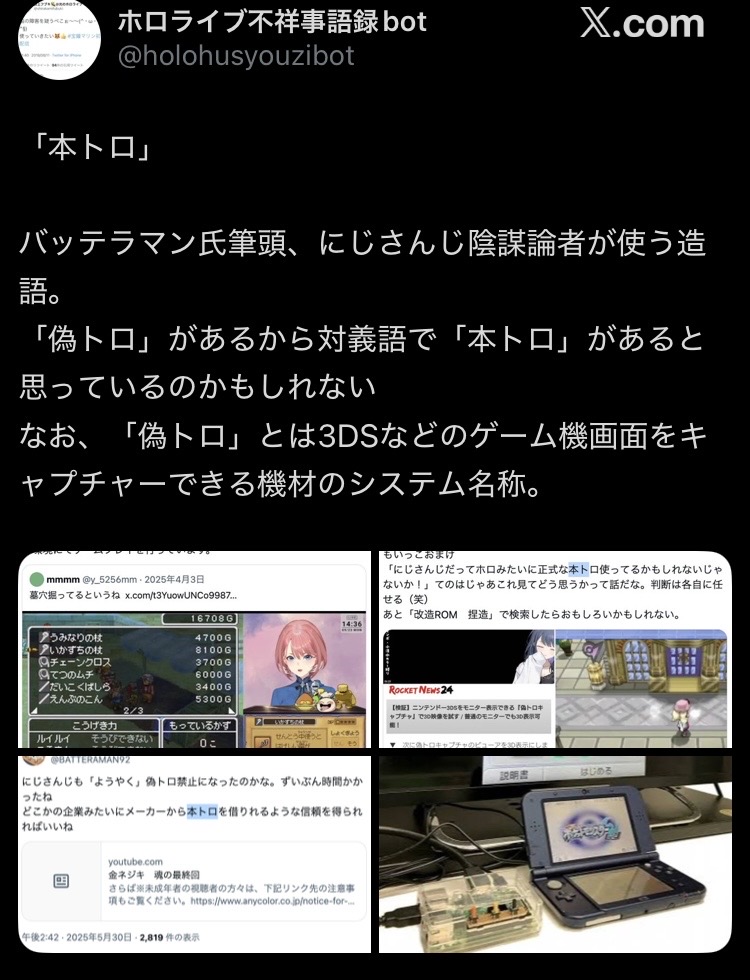 | … | 26826/01/28(水)12:18:12No.1396598123そうだねx1偽トロが使う事に問題のない(脳内)正規品という前提で喋るから非正規品である偽に対する本物って意味の本トロが通じないんでしょ |