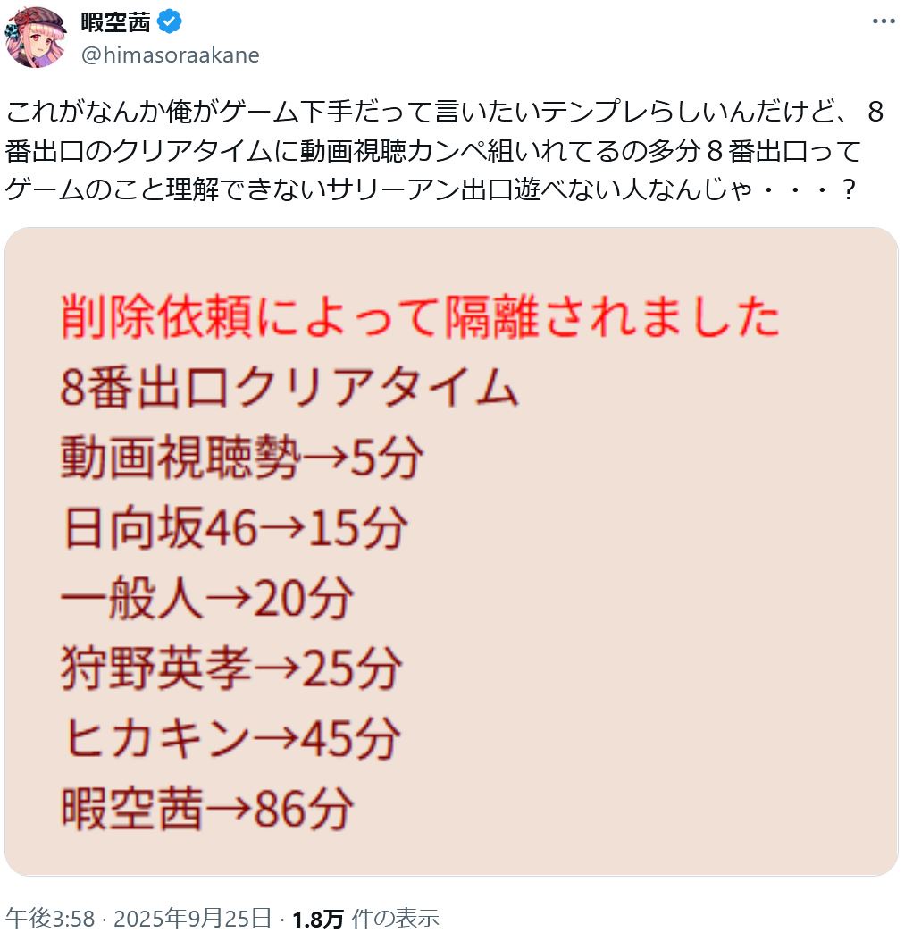 | … | 7326/01/29(木)11:55:21No.1396888976+これもうブロックしてない配信者が悪いだろ |