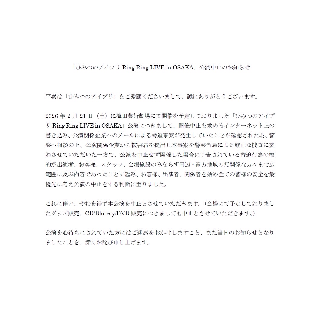 | … | 18026/02/21(土)12:17:07No.1404046615そうだねx2>運営からすると爆破予告が来た段階で警察と会場からイベント中止にしろってほぼ強制されるからどうしようもない |
