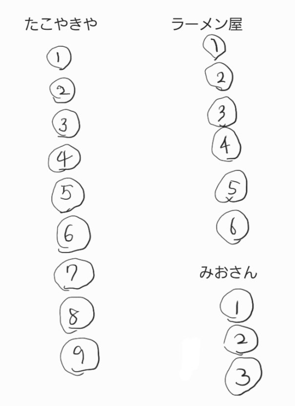| … | 5426/02/25(水)15:37:28 ID:N1i.6OkUNo.1405440735+>でもよくよく問題文に目を通してみると確かにみおさんの前後の人がたこ焼き屋に並んでいるという明記はされていないんだよね… |