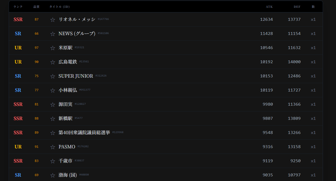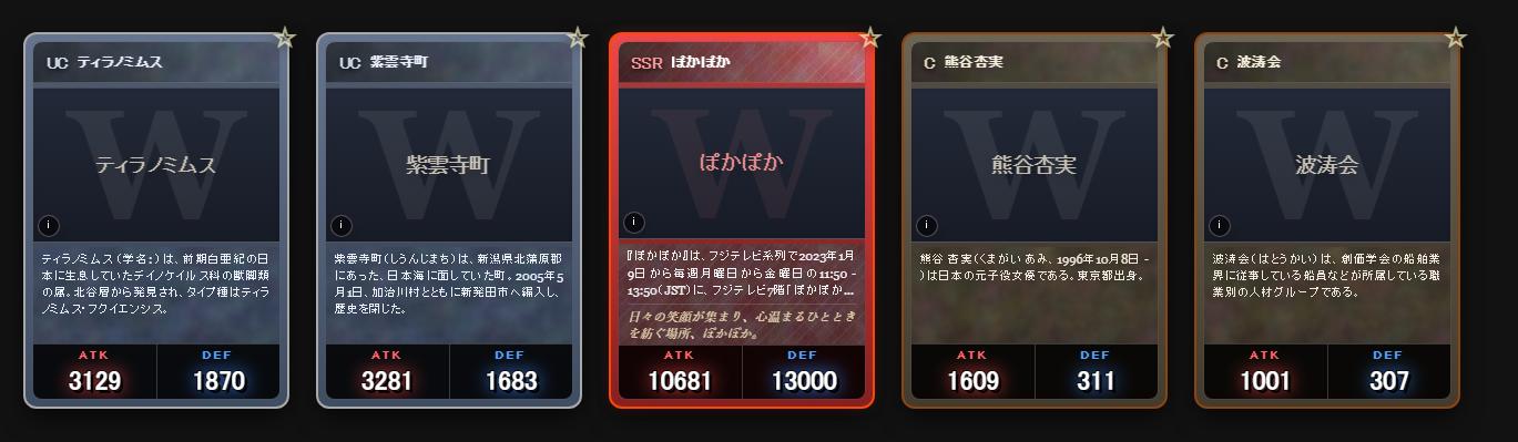 | … | 7626/03/04(水)14:55:34No.1407614369+俺の小田急5000形より弱いSSRあるかな? |