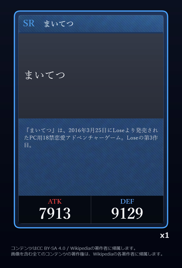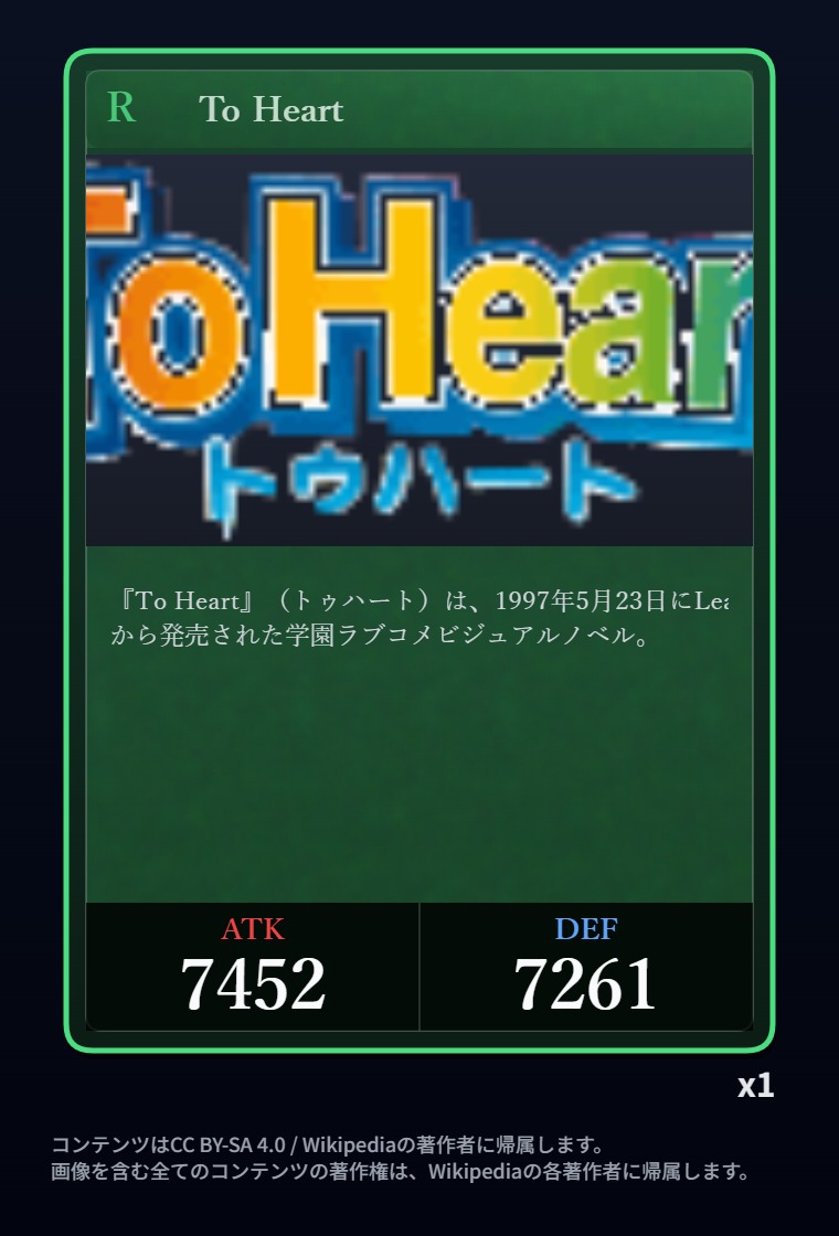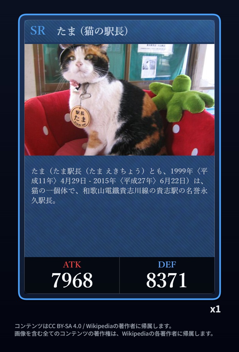 | … | 24726/03/05(木)07:17:39No.1407815500+そういやディープインパクトがATKカンストなのは知ってるけど他にカンストしてるカードあるっけ |