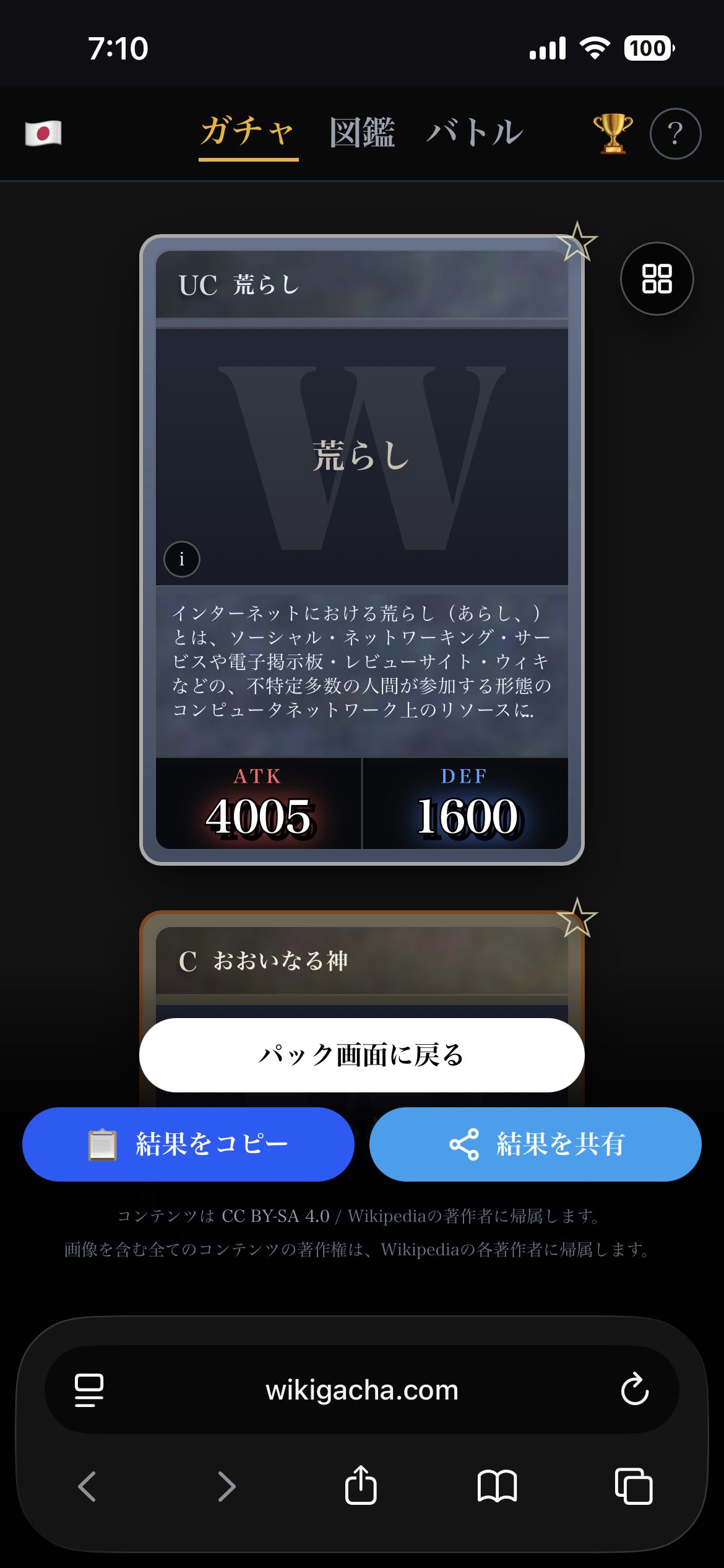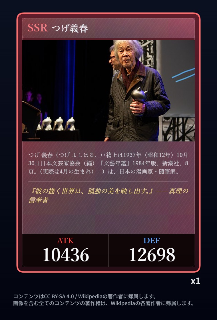 | … | 6526/03/05(木)02:58:40No.1407805914+Wikipediaガチャ結果: |