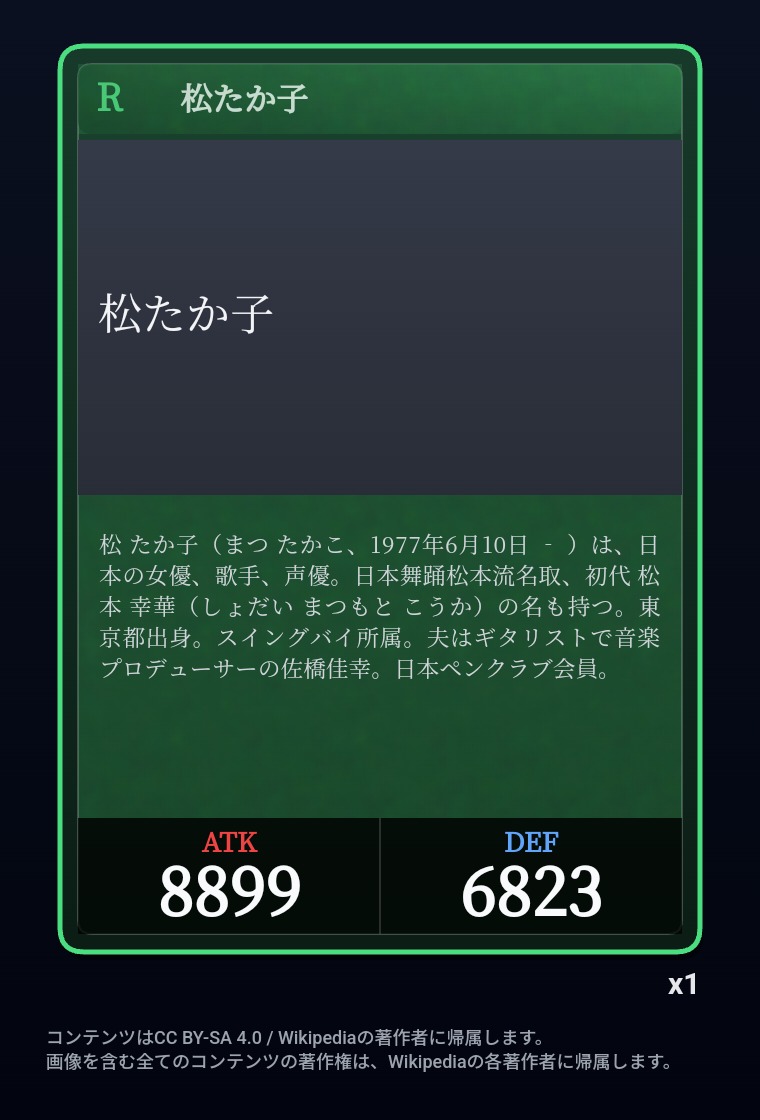 | … | 26326/03/05(木)07:29:08No.1407816495+出身中学・高校のカード引いちまった…アンコモンだった… |