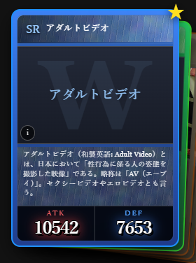 | … | 11226/03/05(木)16:34:00No.1407924309そうだねx2>大人気すぐる…何でこんなアホみたいな辞書カードゲー流行ってんだよ…! |