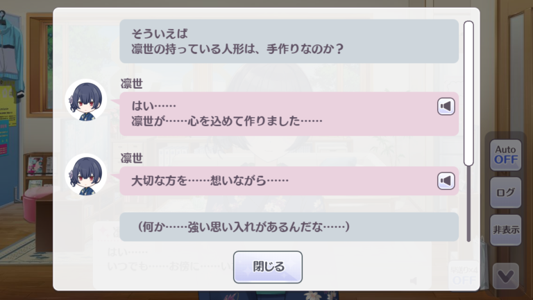| … | 3726/03/05(木)20:50:31No.1407993122+凛世の手作りで何か動く時あってチャックが付いてて中に箸とか入ってる |