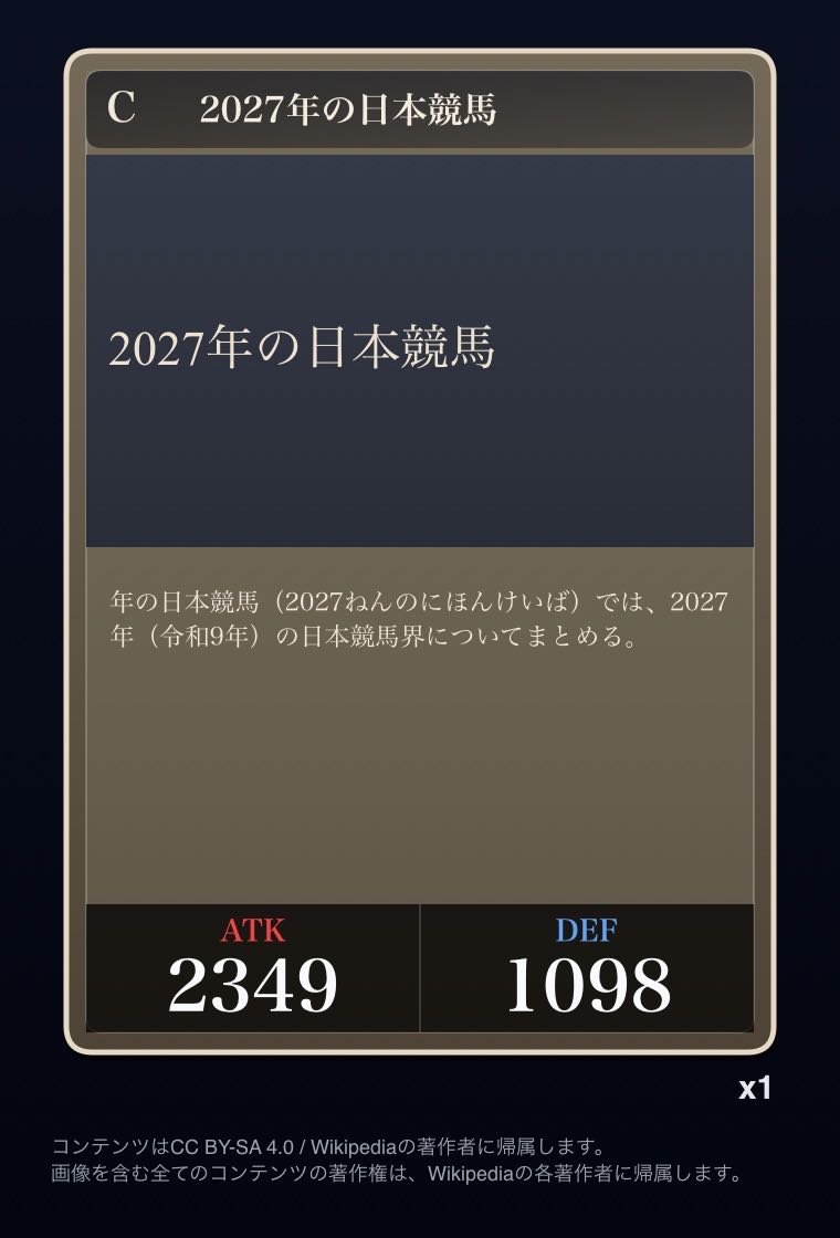 | … | 4726/03/05(木)23:49:31No.1408051949+Wikipediaガチャ結果: |