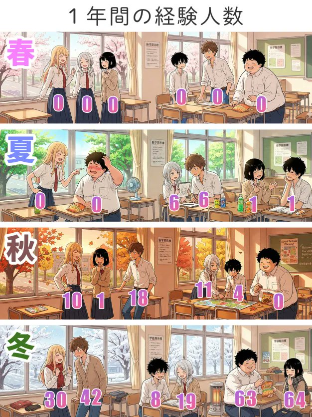| … | 2626/03/06(金)14:01:49No.1408164309+秋だけ背景の教室が微妙に違うのが何かのヒントかもしれん |