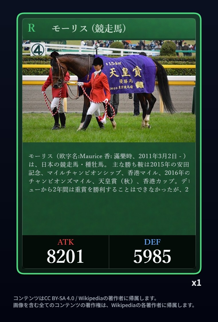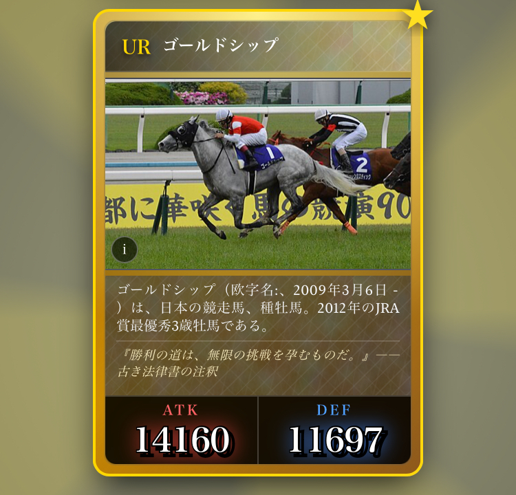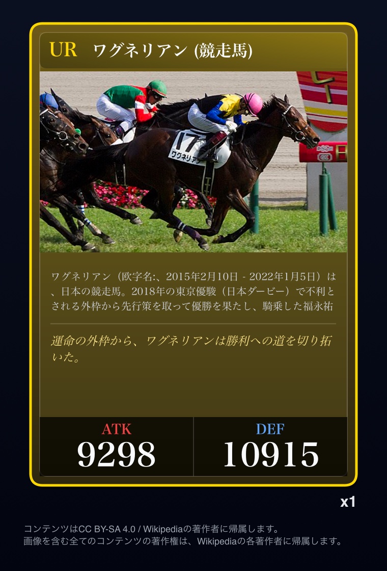 | … | 23226/03/06(金)23:58:55No.1408341272+去年の有馬記念のカードは出た |