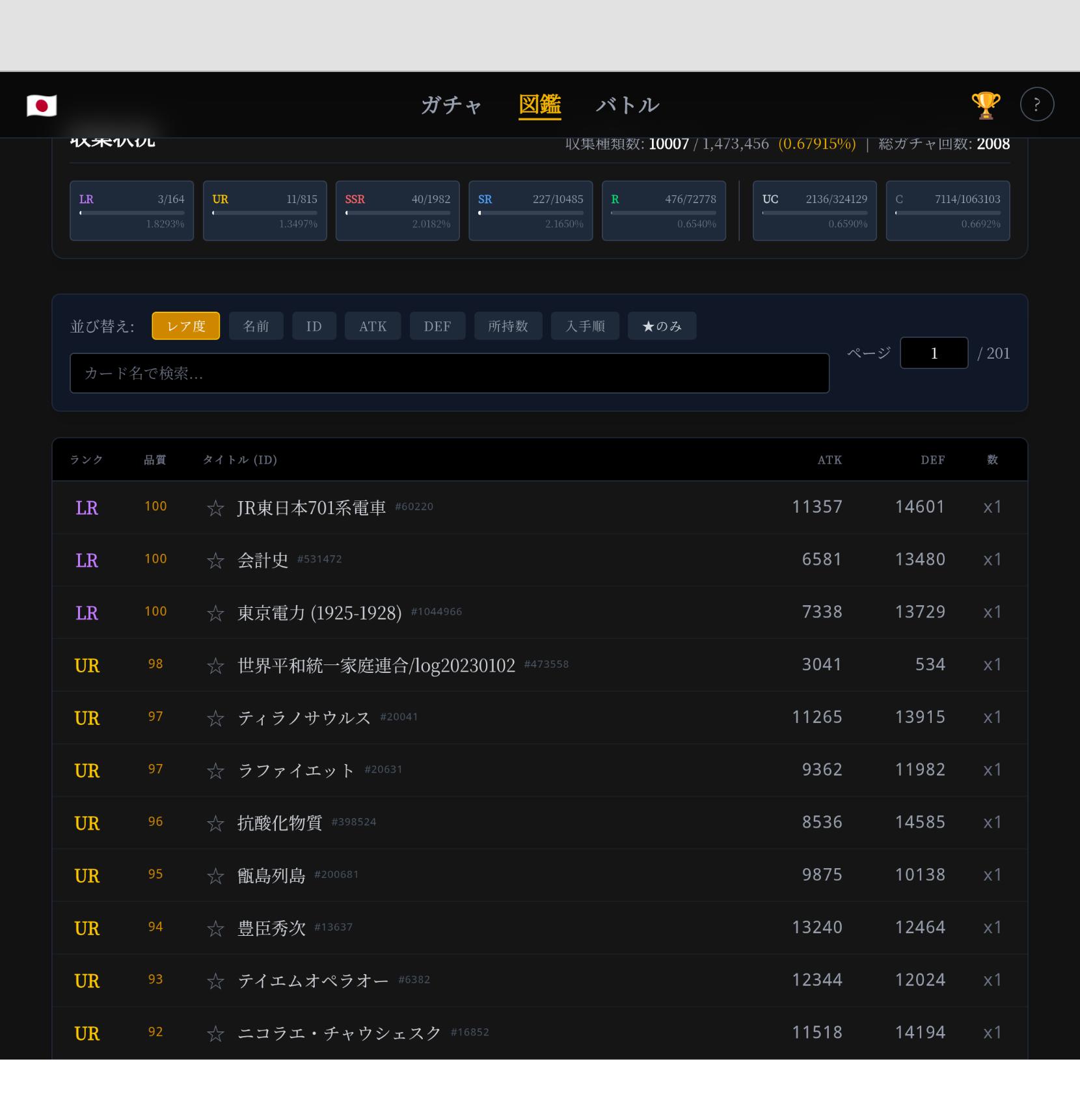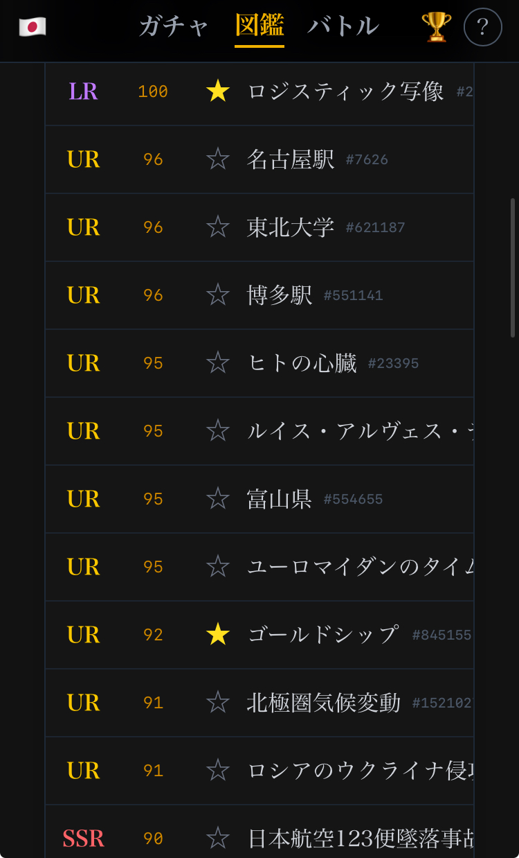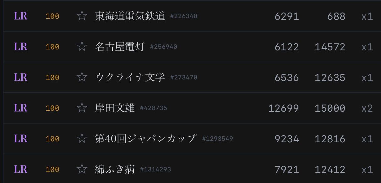 | … | 9526/03/06(金)23:21:40No.1408328928+いやまあLR164で総数1473456なんで大体0.01%なんだよな |