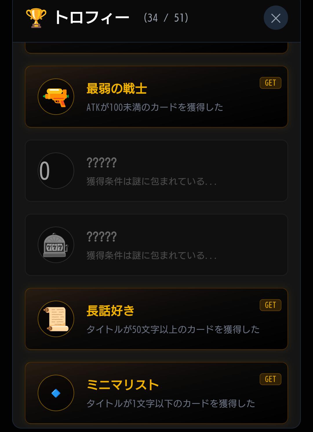 | … | 6026/03/06(金)23:05:59No.1408323688+>最弱の戦士の下2つの実績ってどうやったら解除される? |