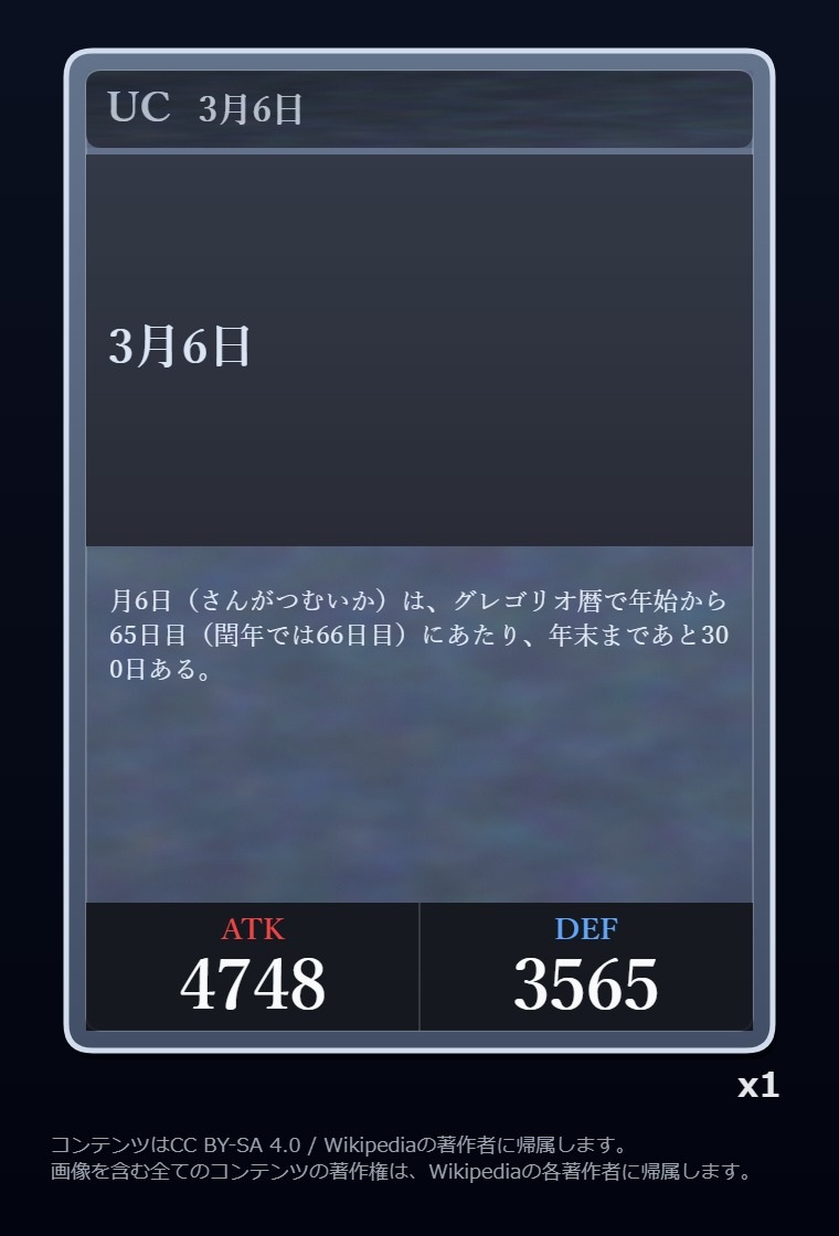 | … | 426/03/06(金)22:46:19No.1408316611+Wikipediaガチャ結果: |