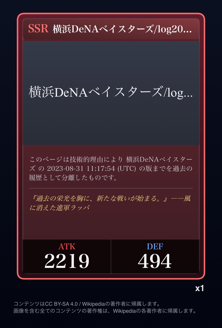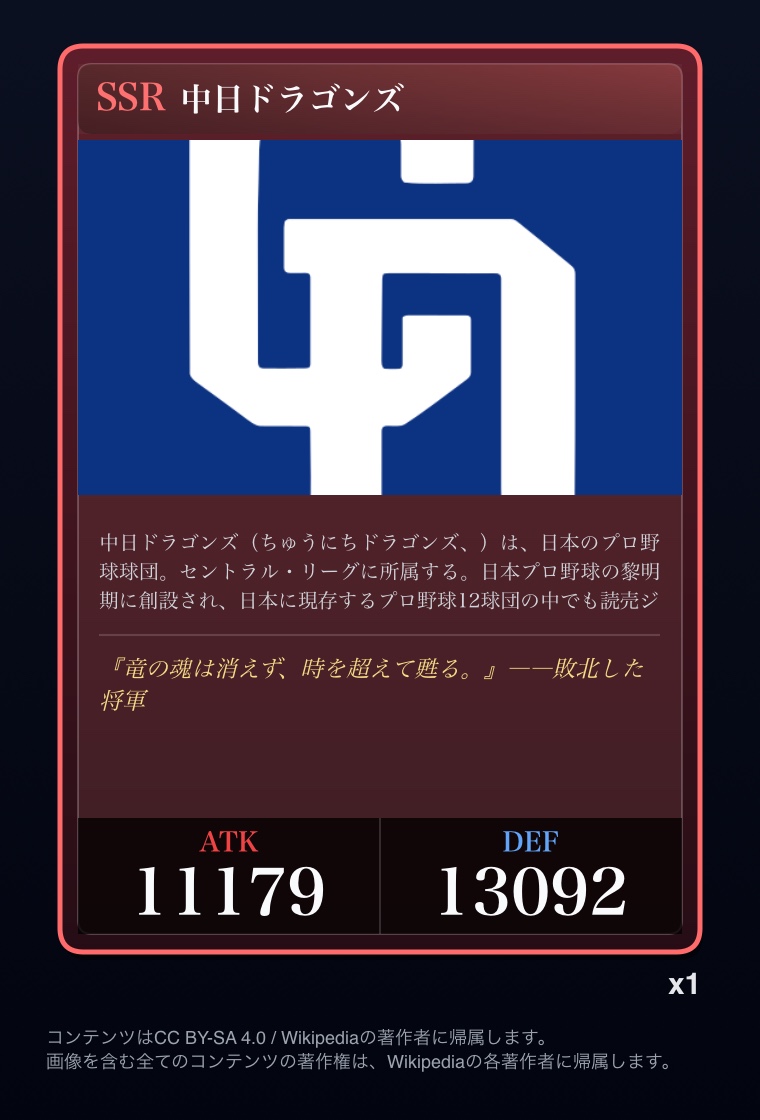 | … | 25026/03/07(土)00:02:51No.1408342401+Wikipediaガチャ結果: |