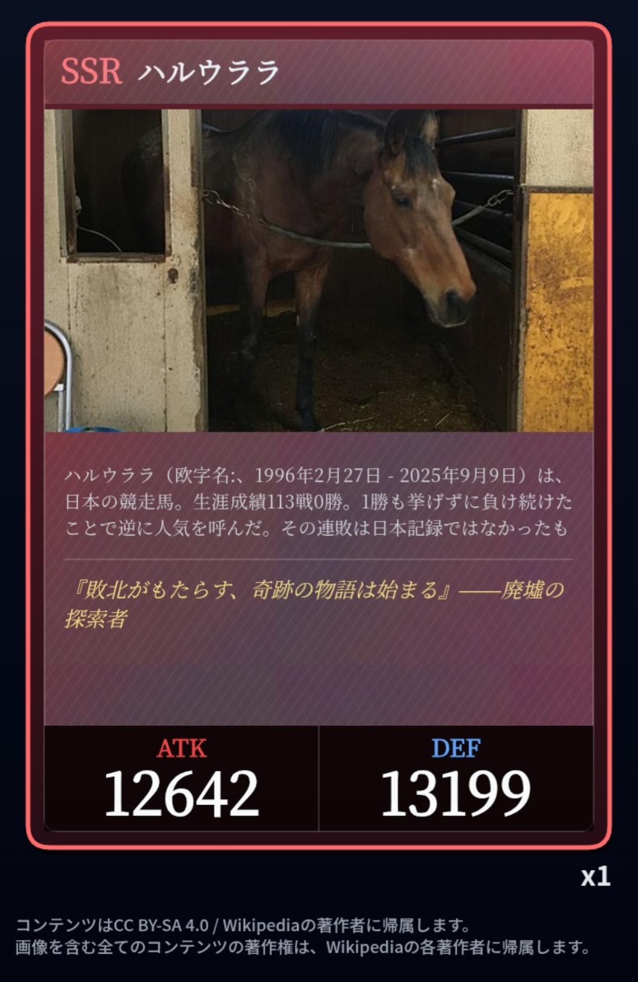 | … | 20626/03/06(金)23:54:20No.1408339890+馬はSRのサクラユタカオーしかないなぁ |