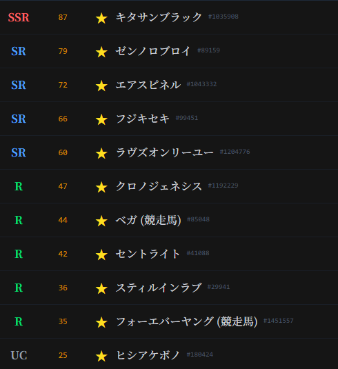 | … | 19226/03/06(金)23:51:31No.1408338933+高レア馬全然来ないんだよなぁ |