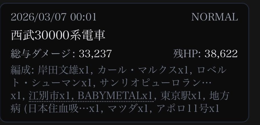 | … | 26126/03/07(土)00:04:13No.1408342846+西武30000系電車を討伐しました! |