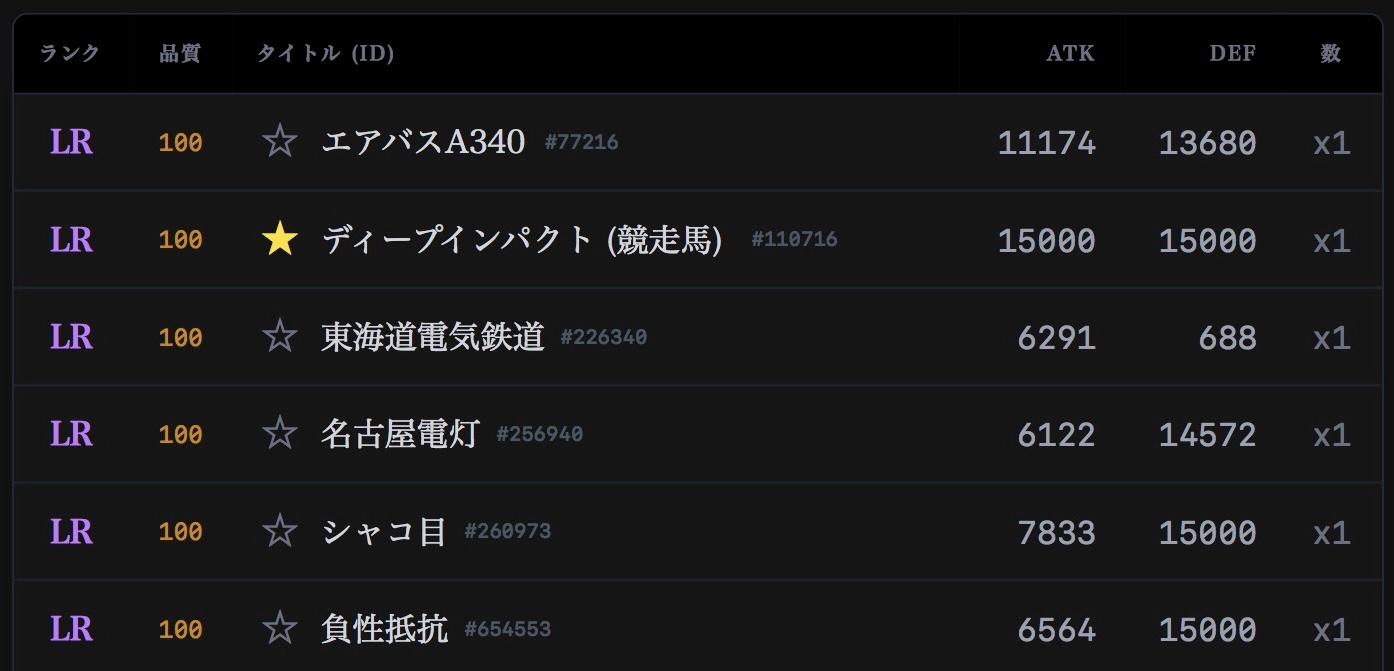 | … | 41326/03/07(土)03:06:31No.1408373576+>まだダブってないからシステム的にダブらないもんだと思ってたけど剥きまくるとダブるのか… |