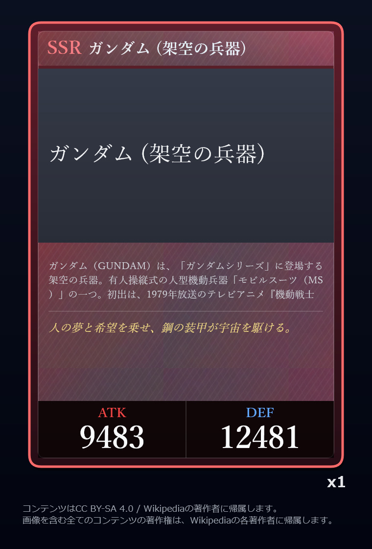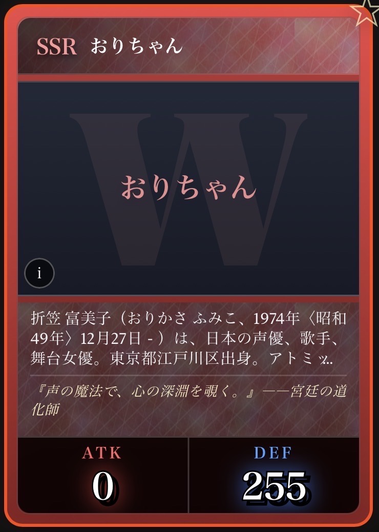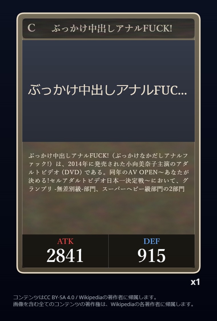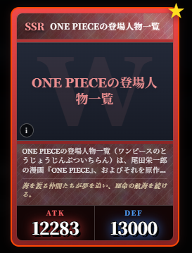 | … | 2326/03/07(土)00:32:00No.1408351352+記事が気になってWikipediaを開いてしまうカードは良いカード |