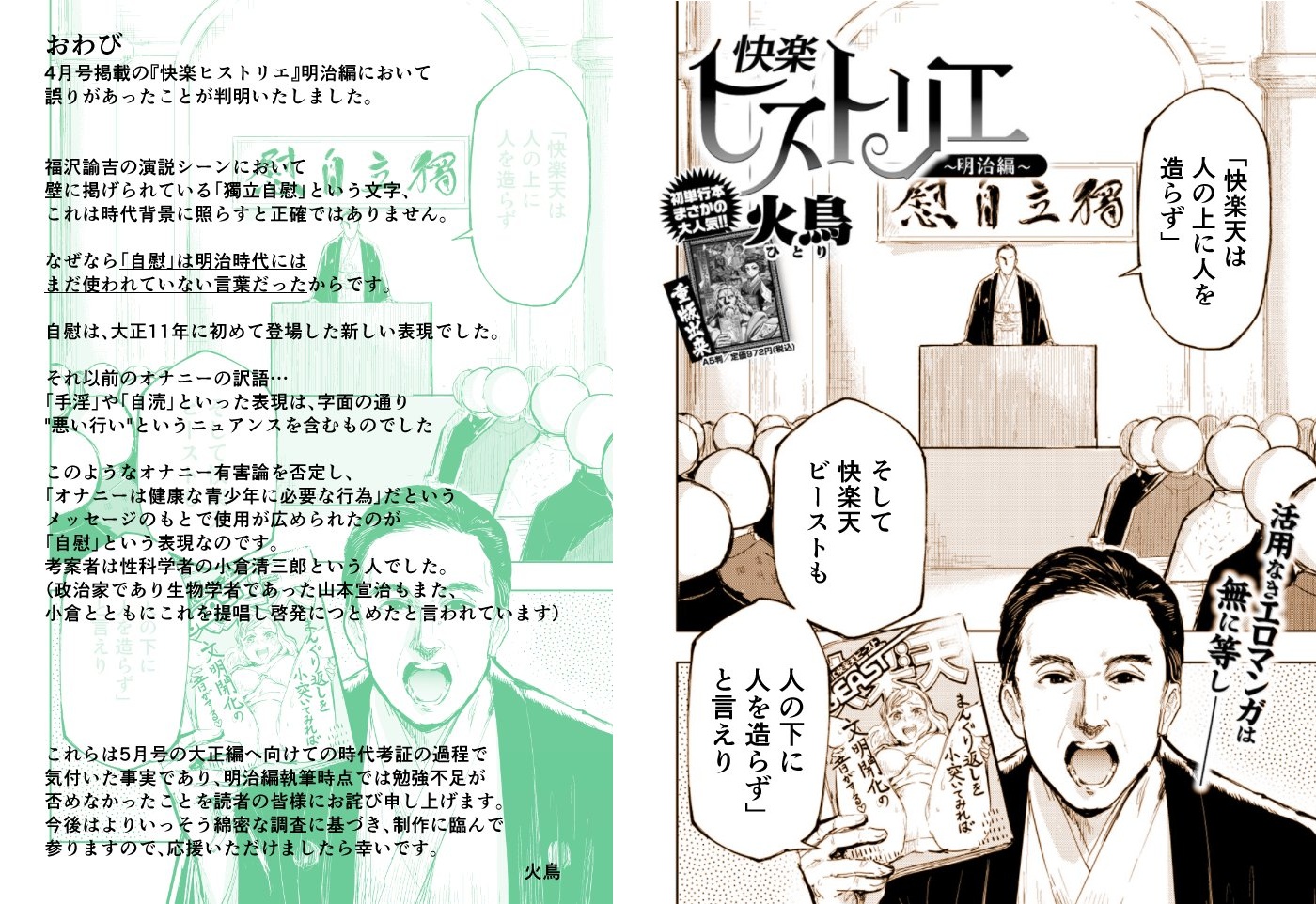 | … | 726/03/07(土)20:13:07No.1408568515そうだねx9火鳥のアカウントに歴史好きから大正時代以前に『自慰』が使われた事例が |