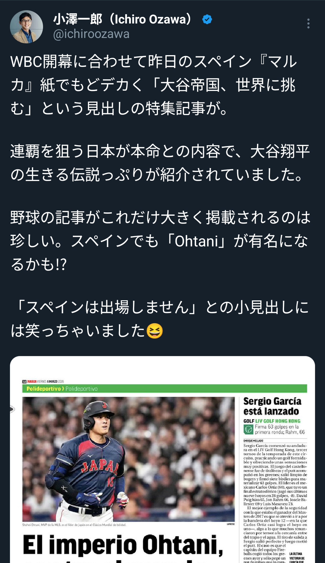 野球ってマイナースポーツとか言われてたけどちゃんとスペインでも話題になってるんだな…