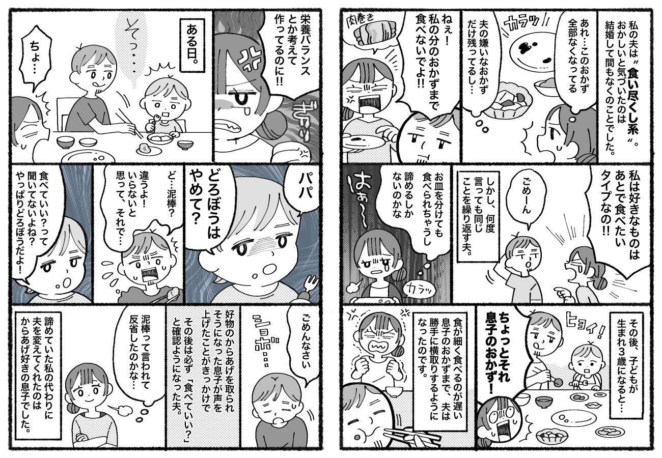 | … | 9326/03/08(日)13:45:08No.1408814207+>夫へ出す食事が少なくて文句言われてるのを誇張表現する |