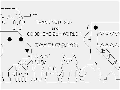 | … | 2326/03/09(月)01:21:33No.1409030562+そういや5chになってからもあのスレはたまに見に行ってたなって思って覗いてみたら保守とコピペしかなかった |