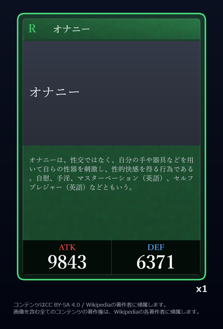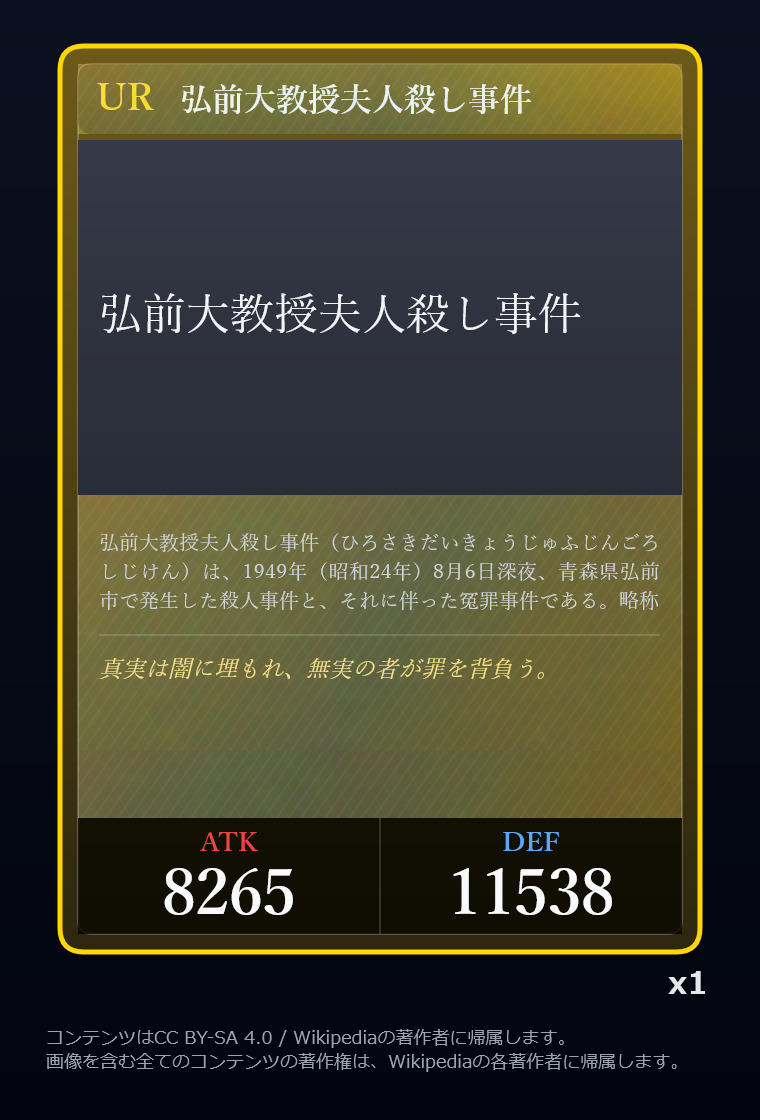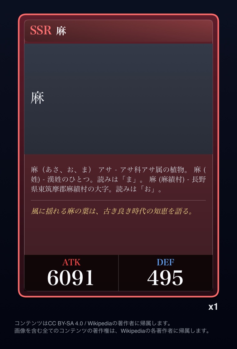 | … | 2726/03/12(木)00:40:05No.1409894321+Wikipediaガチャ結果: |