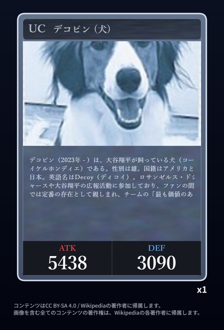 | … | 9726/03/12(木)02:02:51No.1409908514+>🟦[SR] チロ (犬) ATK 4596 / DEF 6666 |