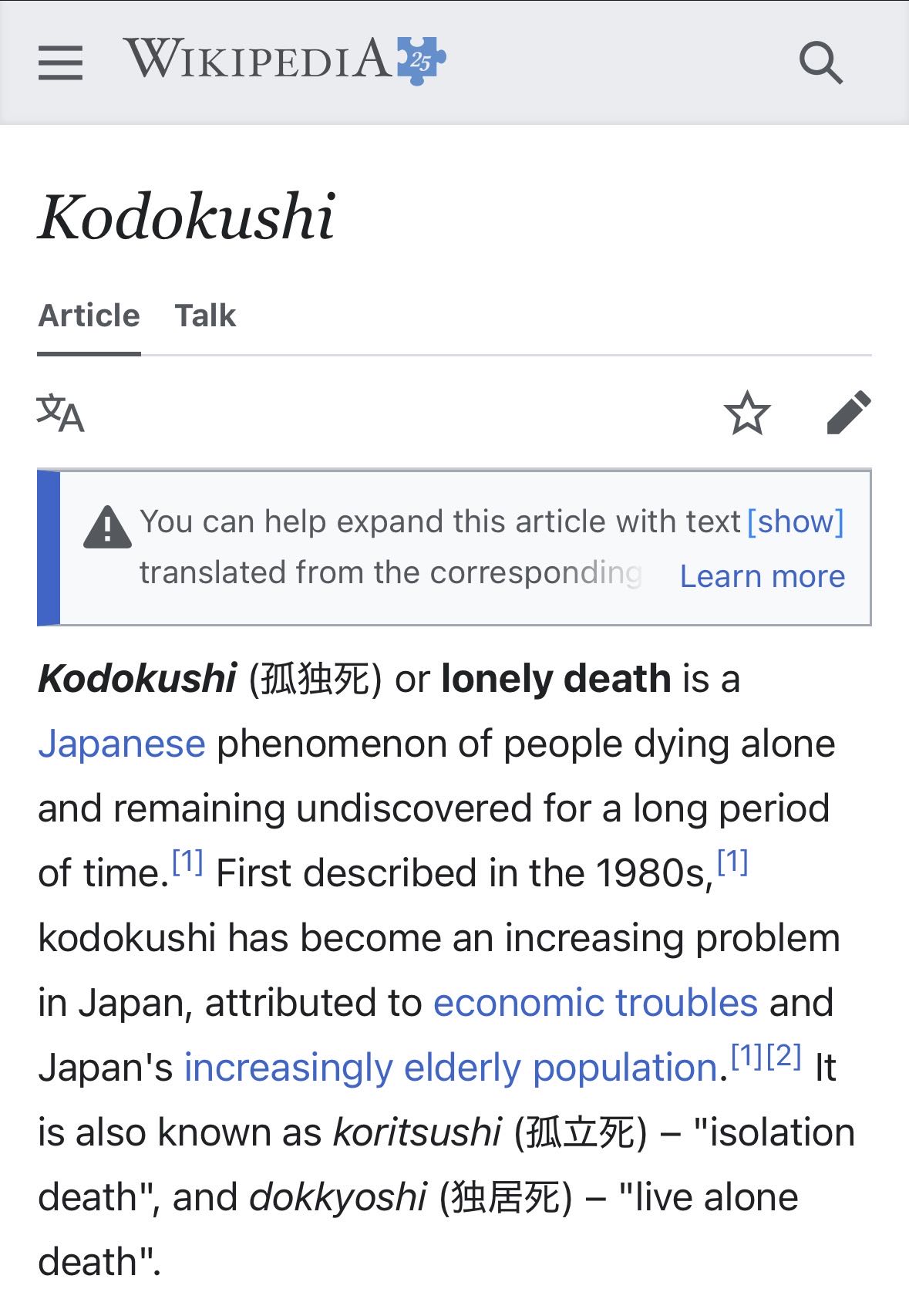 孤独死って英語だと存在しなくてそのまま言われてたなんてしらそん…