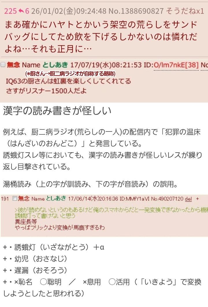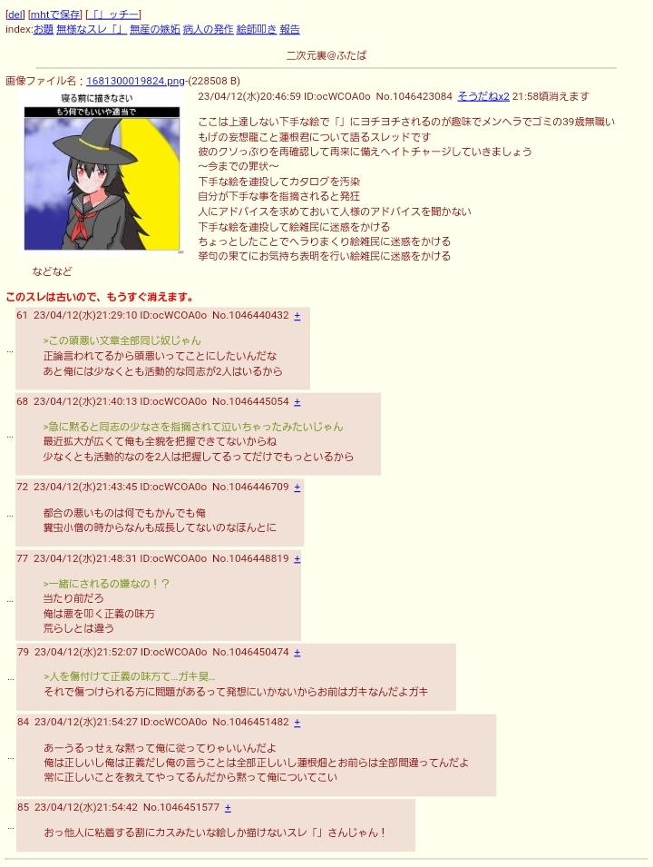 | … | 526/03/13(金)20:49:30No.1410406995そうだねx29「架空の荒らし」って言葉使うやつマジで頭悪い荒らししかいねぇな |