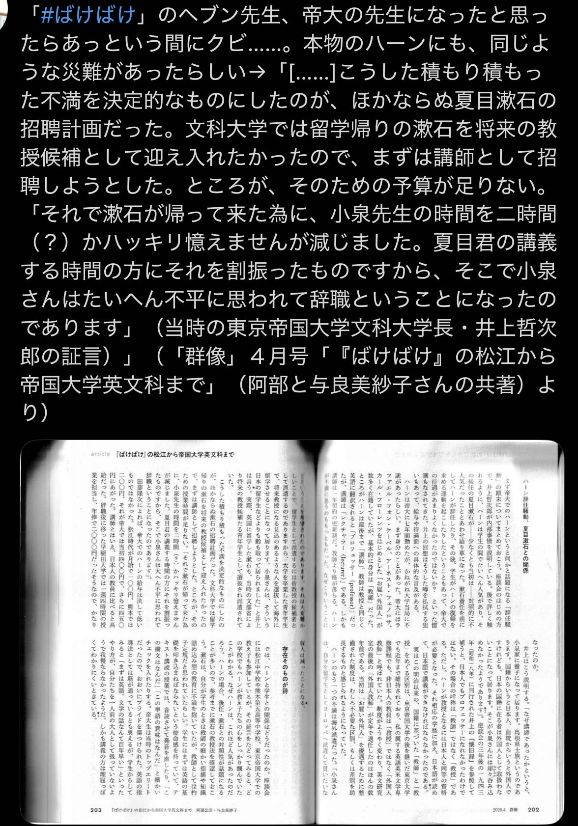 | … | 926/03/18(水)08:00:40No.1411814649+ヘブン先生 俺 似てる |