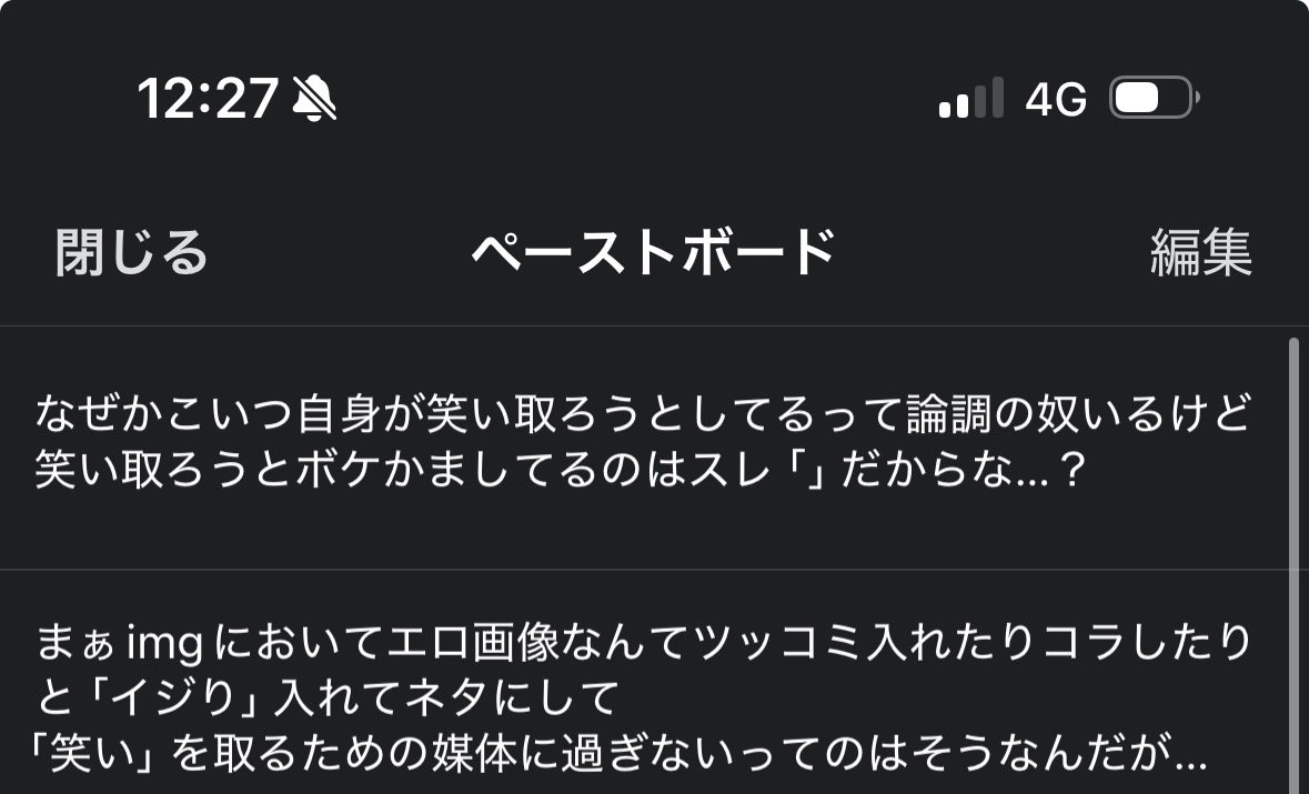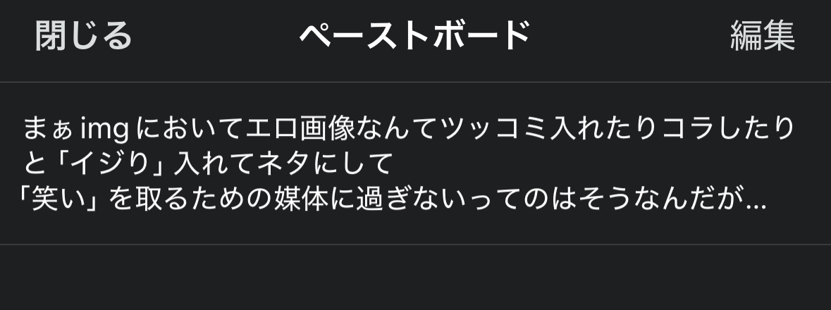 | … | 3726/03/18(水)12:12:00No.1411860101そうだねx6>>いや俺「笑い」を追求する「」のレスを見かけたらクリップボードにまとめてコピペできるようにしてあるからこれもこのうんこの過去レスから再放送してるだけ |