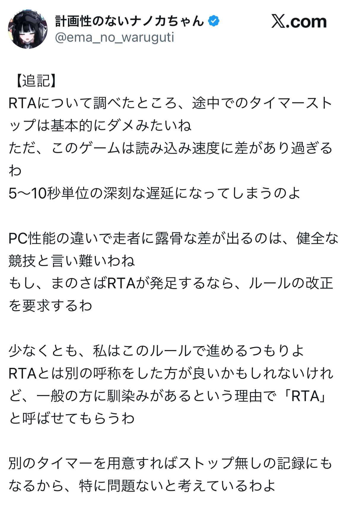 | … | 42126/03/18(水)21:35:00No.1412011485+最初からロード時はタイマー止めるレギュにしたって説明すればたぶん問題なかった |