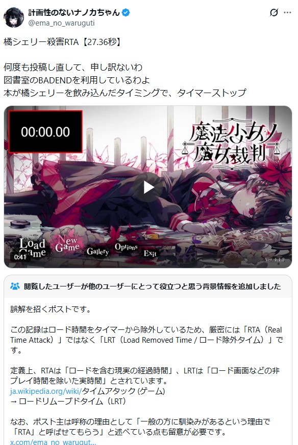 | … | 2826/03/18(水)20:42:11No.1411992173そうだねx1そういうのはLRTという別ジャンルになるんでRTAではないとすごくツッコまれてた |