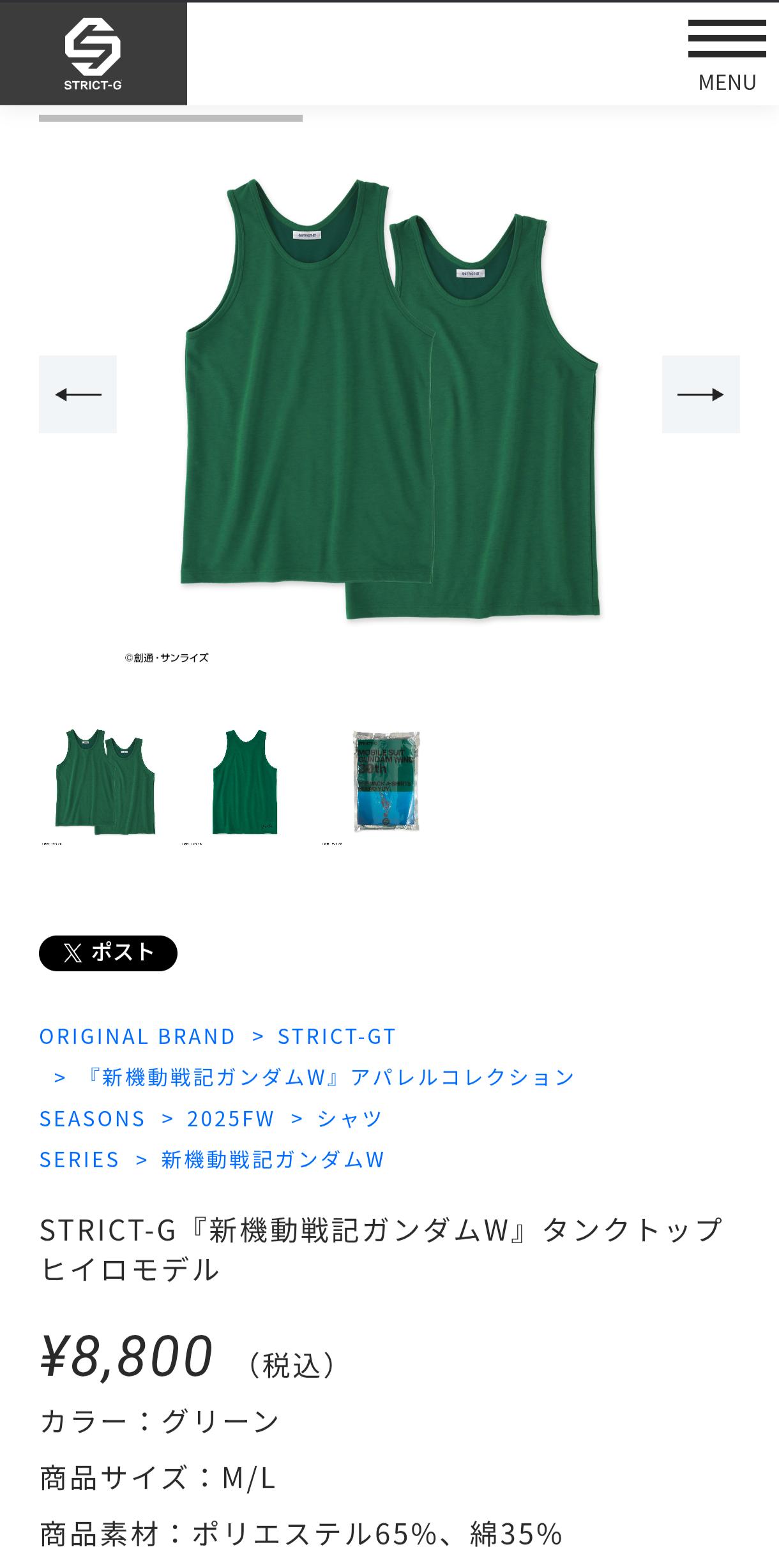 ガンダム公式アパレルが緑のタンクトップ出してる