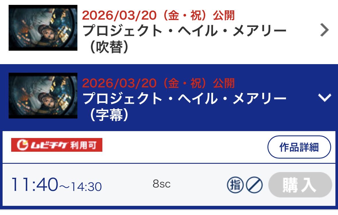 | … | 70526/03/20(金)16:34:12No.1412510935+結構前からやたらスレ立ってたから見にいったけどオデッセイとかインターステラー期待したのに微妙だった |