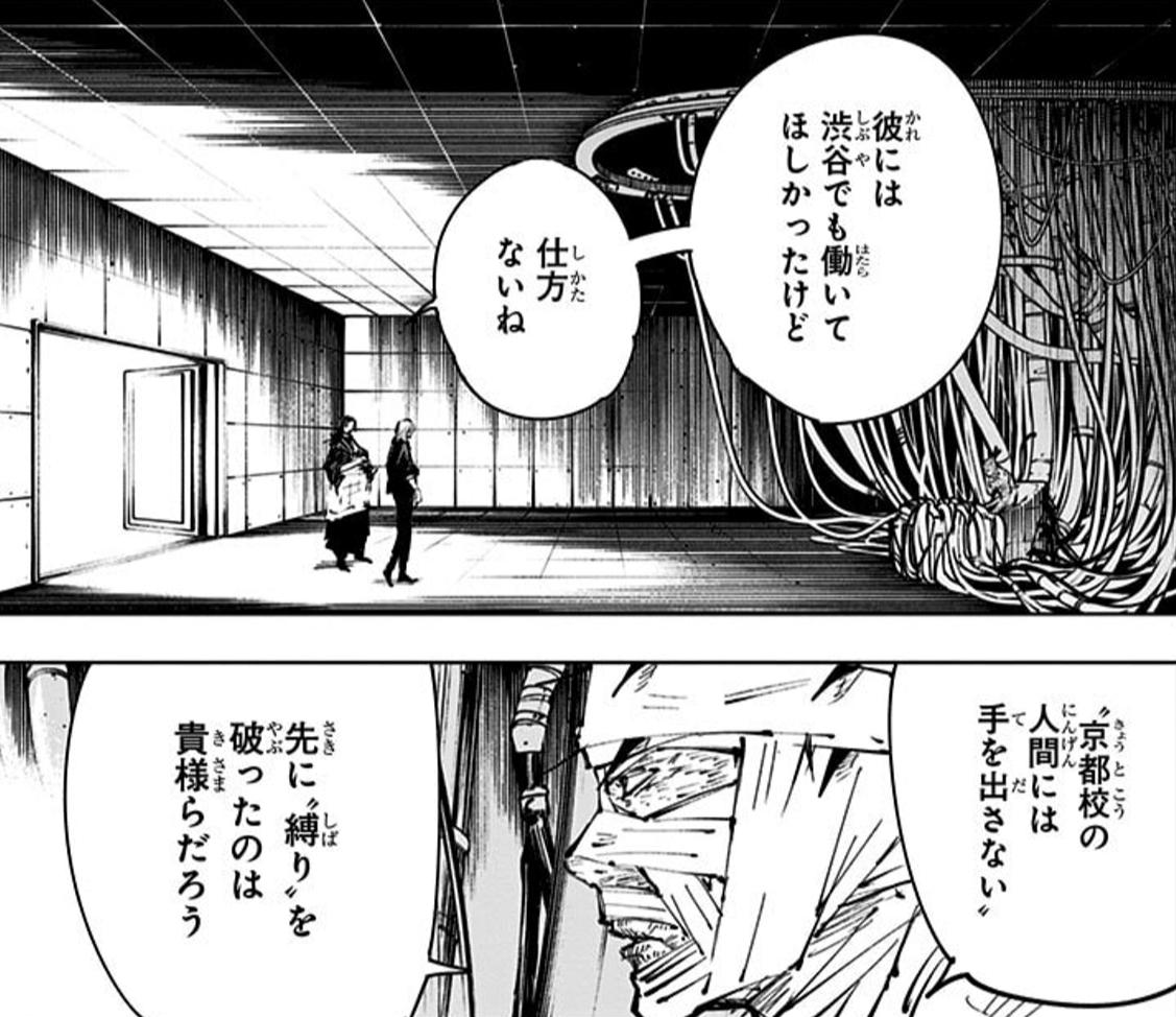 | … | 1326/03/22(日)16:38:57No.1413195381+多分身体治すまではメカ丸側も内通者であることをバラさないみたいな縛り付いてただろうから事前に五条呼んでおくとかもむりだよな |