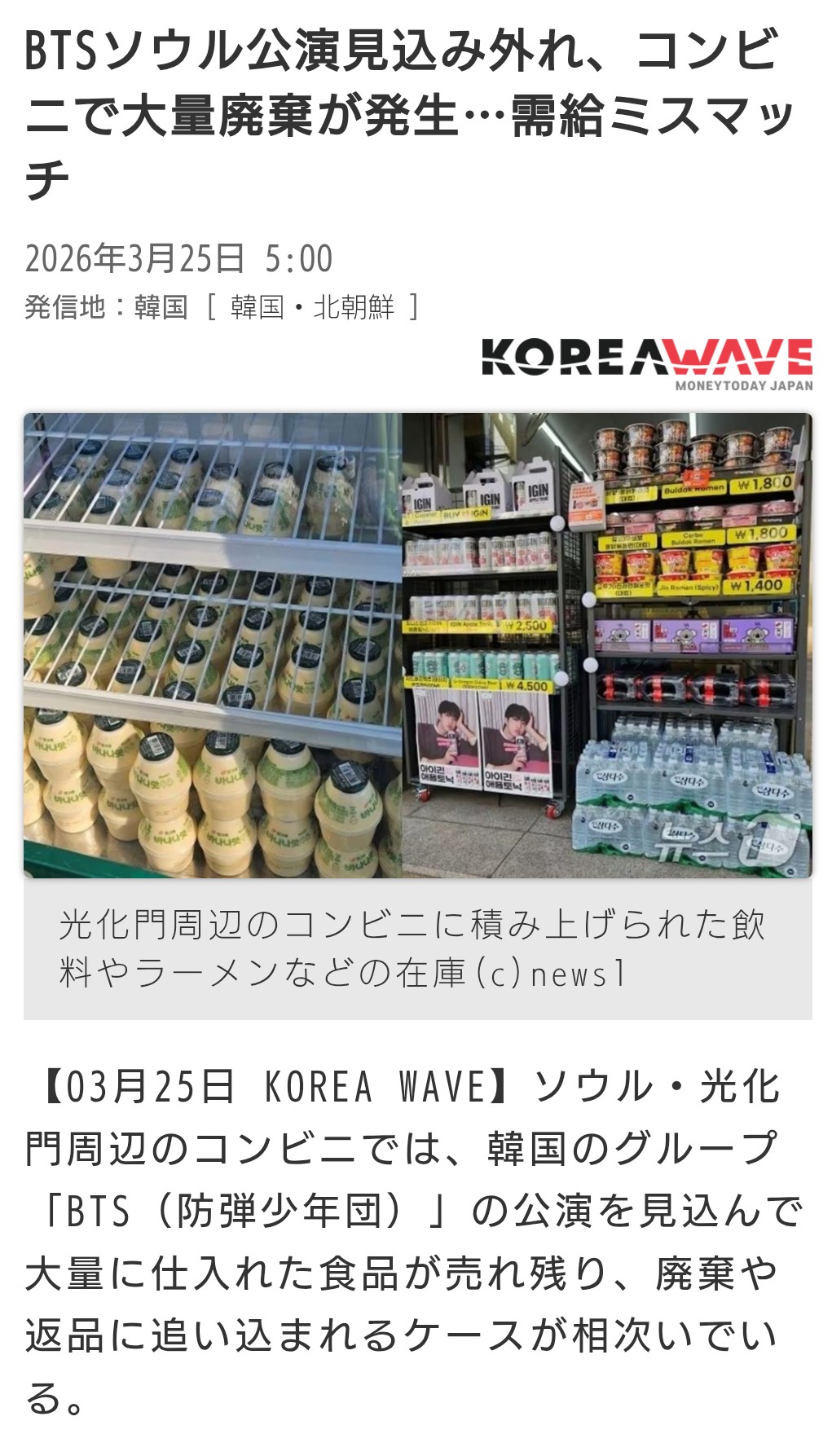 | … | 426/03/25(水)10:33:01No.1414045497そうだねx23>国内外からファン25万人がソウルに押し寄せると思ってたら |