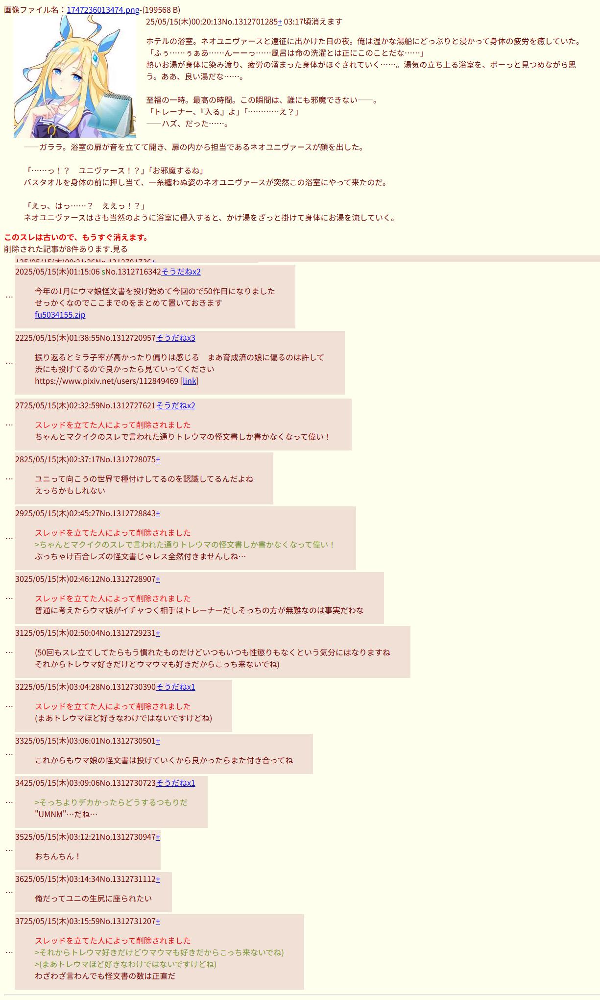 | … | 1126/04/16(木)01:28:29No.1420772368そうだねx1ゆにといいことしたい |