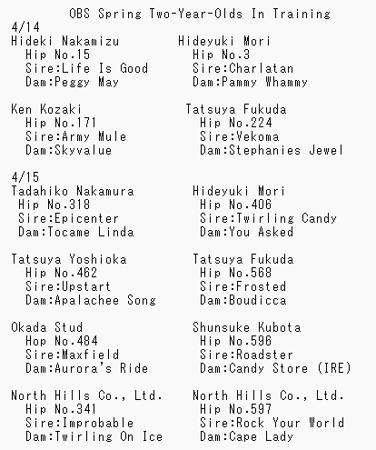 | … | 30026/04/17(金)01:12:58No.1421045651+2007メイショウサムソン 2人1着 |